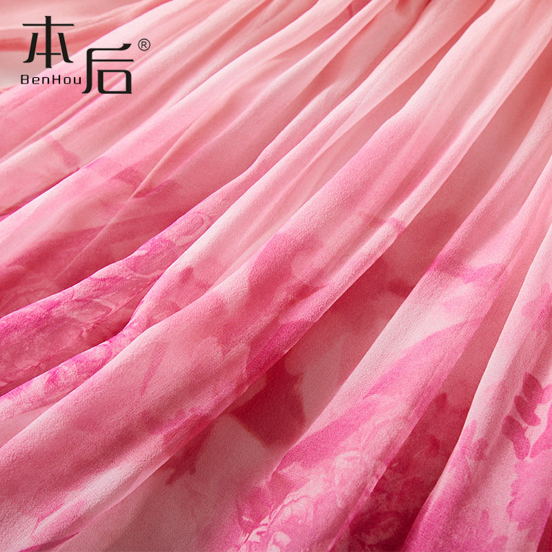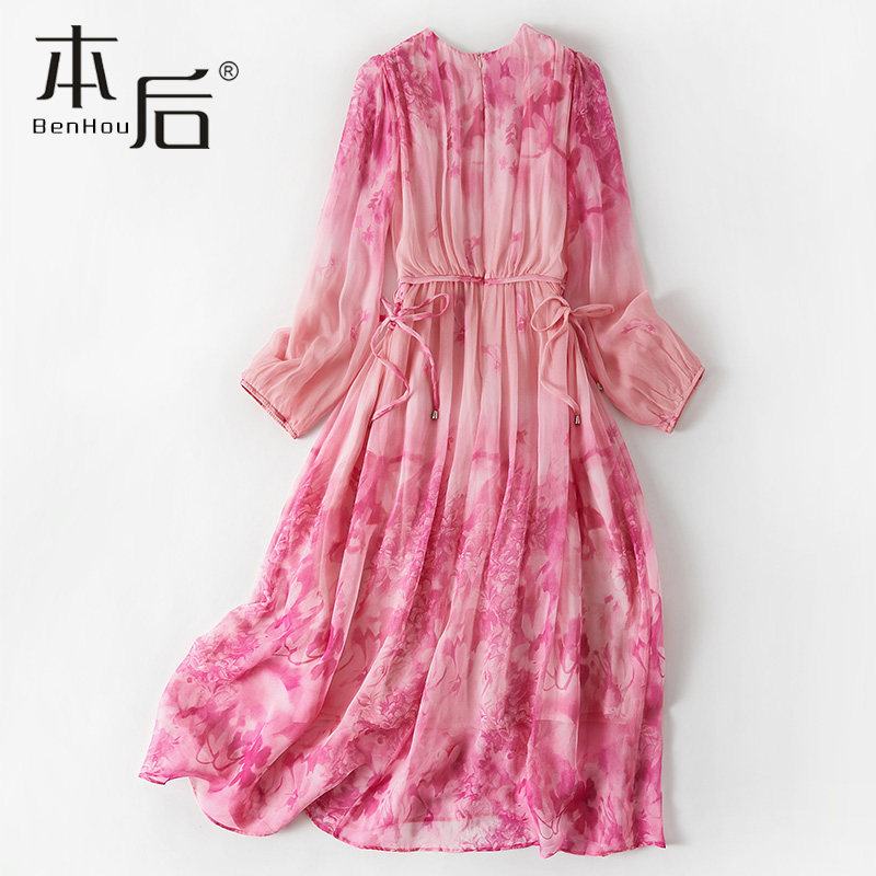 【清仓】86032 真丝连衣裙夏女桑蚕丝OL气质高腰显瘦沙滩长裙