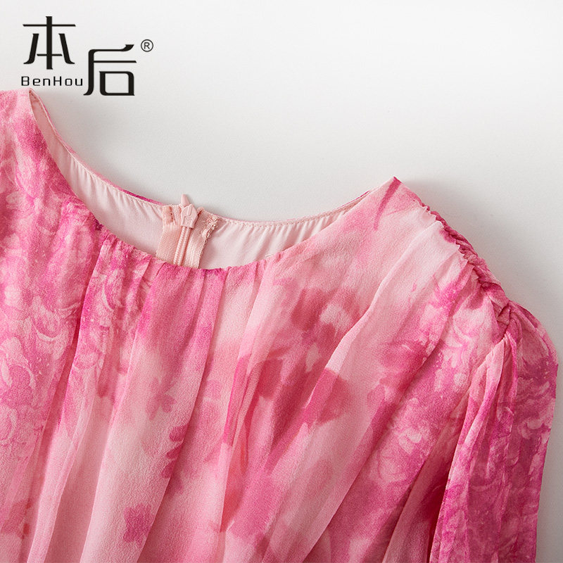 【清仓】86032-樱花粉真丝连衣裙