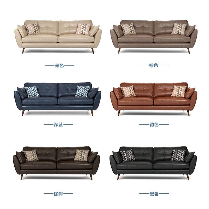 欧式皮沙发客厅简约小户型单人双人三人卧室实木黑色油蜡皮艺沙发
