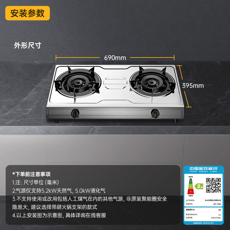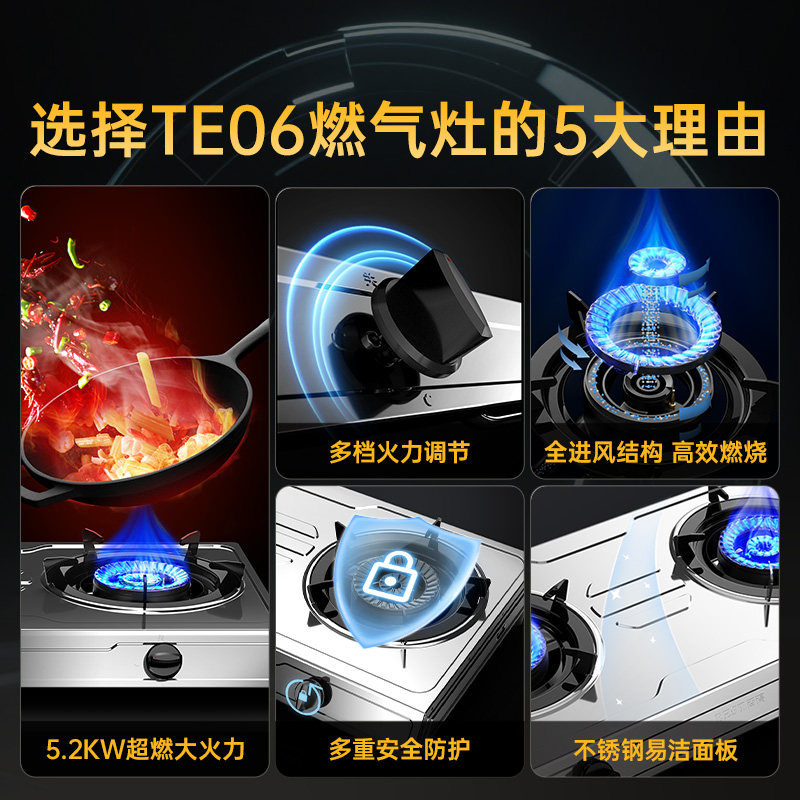 华帝百得天然气液化气双灶家用不锈钢灶具专用燃气灶台式灶台TE06
