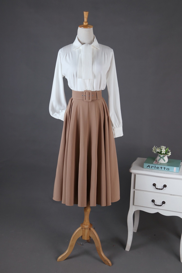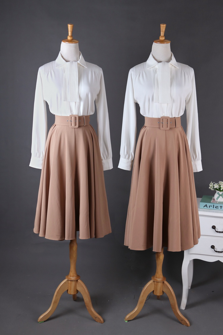 罗马假日赫本同款连衣裙法式复古白色衬衫半裙2件套360度大摆伞裙