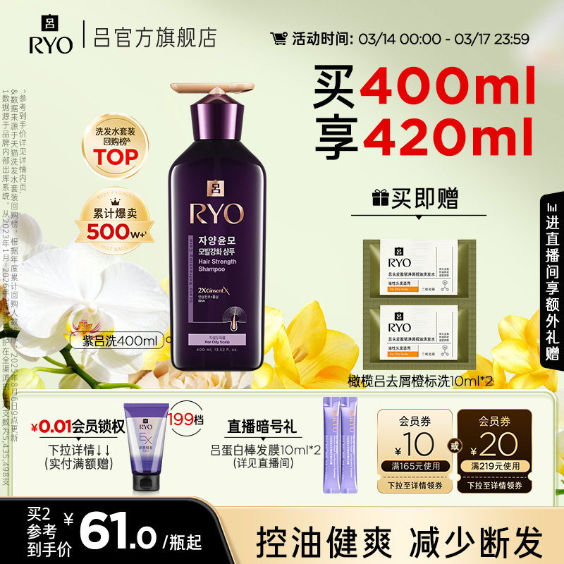 【官方正品】RYO吕紫吕洗发水控油保湿强韧护发素洗发露