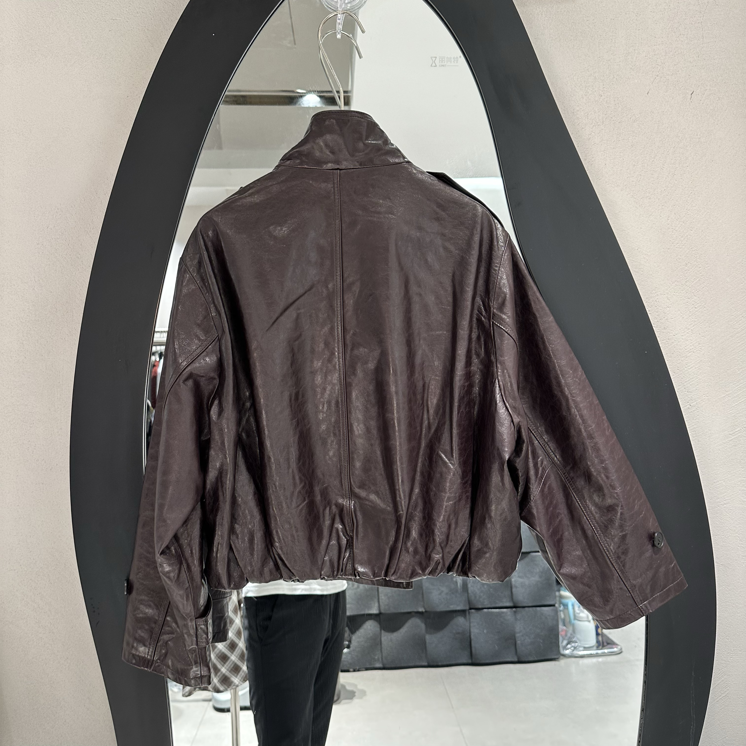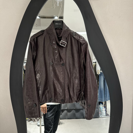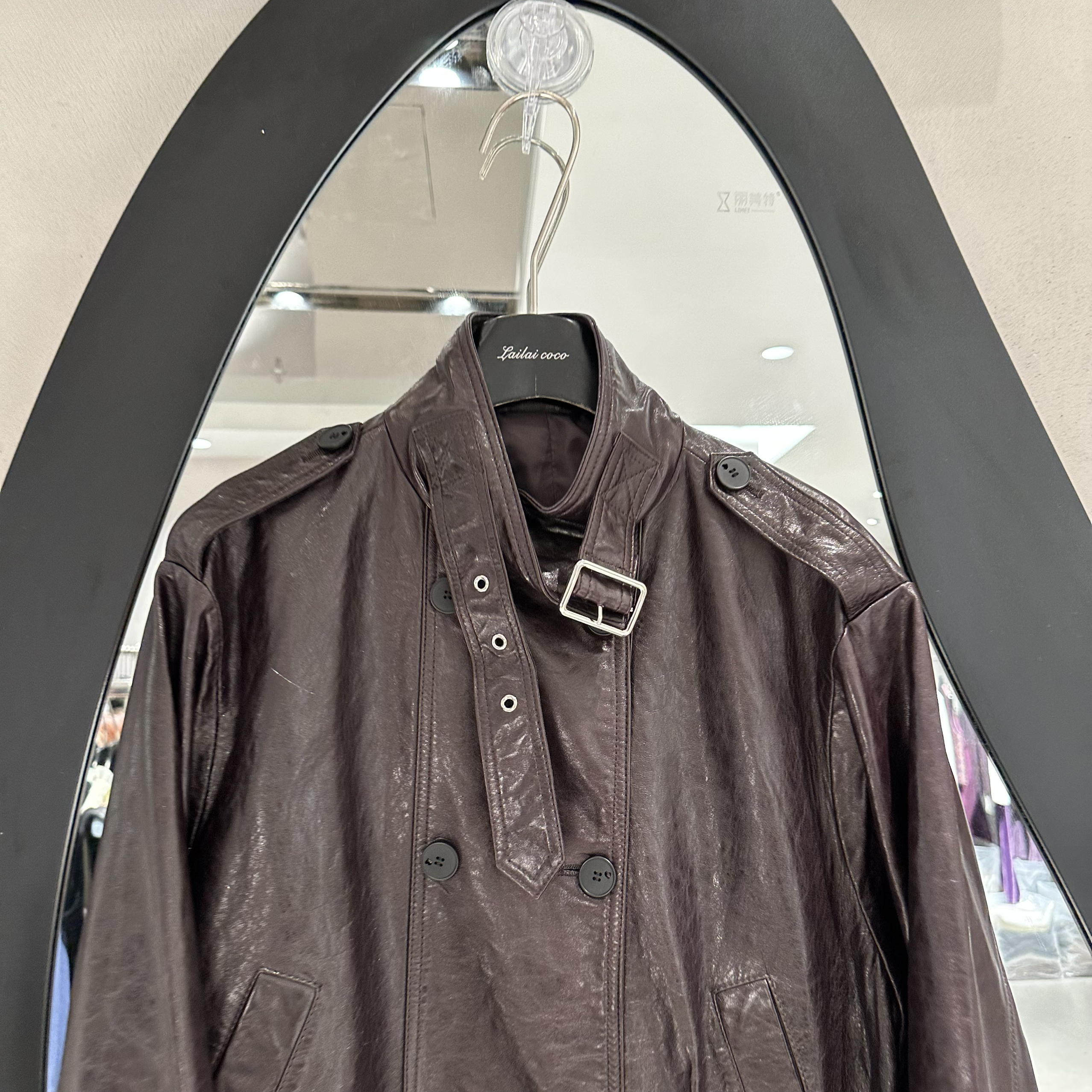 欧洲站2025早秋新款半高领纽扣拼接百搭防风绵羊皮皮衣外套女2513