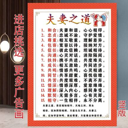 夫妻之道家庭和睦相处海报贴画自粘画不干胶贴纸