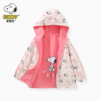 史努比儿童冲锋衣2024新款春秋款双面穿外套男童女童秋装连帽上衣