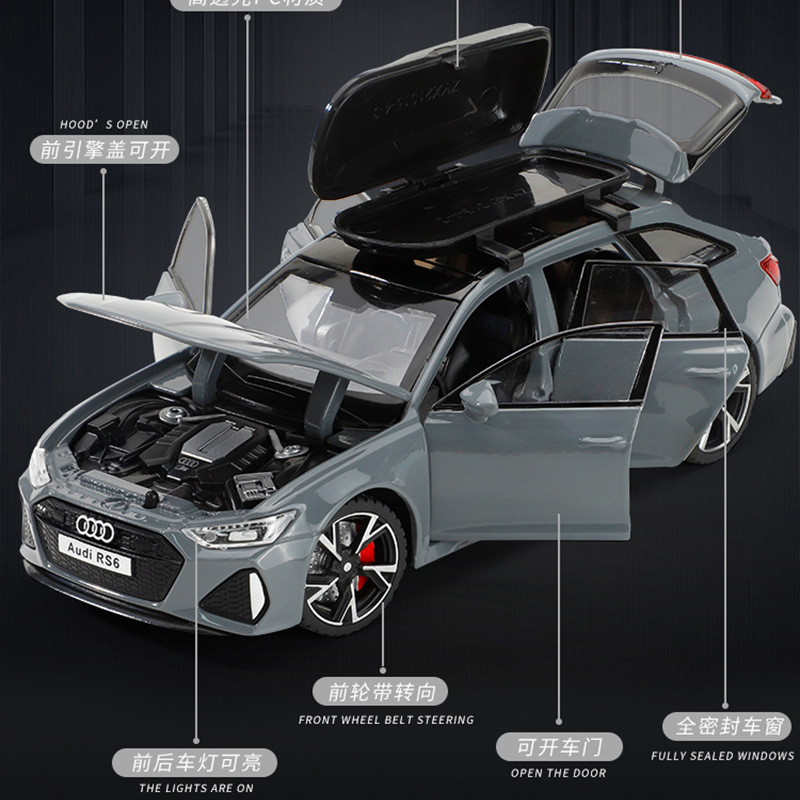 众源兴1/32奥迪RS6合金汽车模型滑行声光瓦车旅行车仿真车盒装