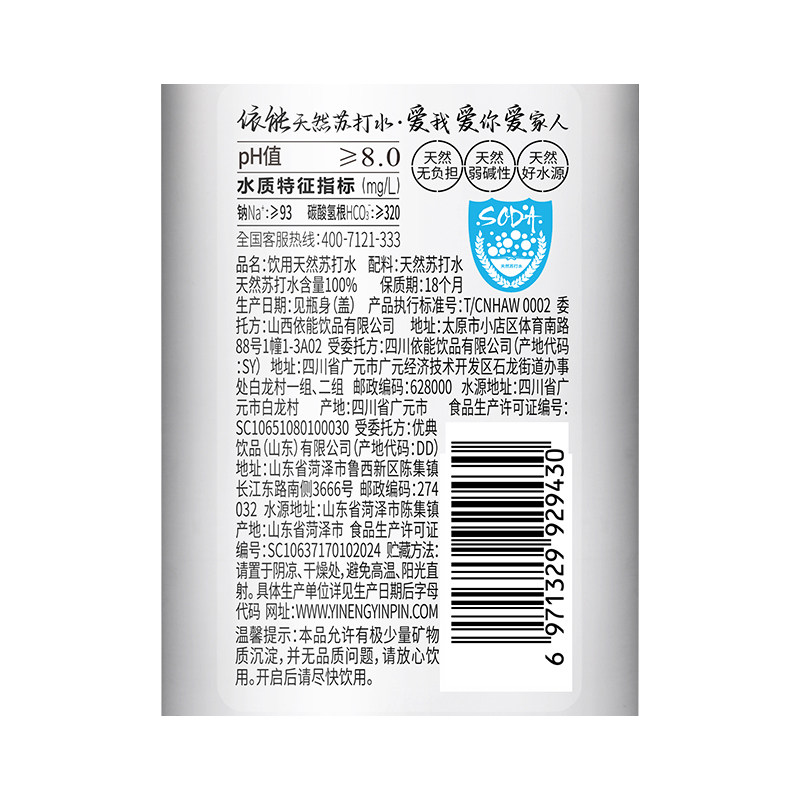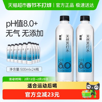依能饮用天然苏打水500ml*24瓶pH8.0+弱碱性矿物质水整箱非矿泉水