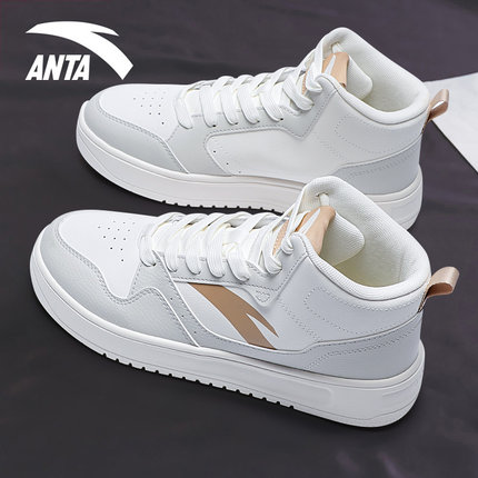 安踏高帮板鞋男款2025秋冬季官方旗舰皮面防水厚底休闲运动男鞋