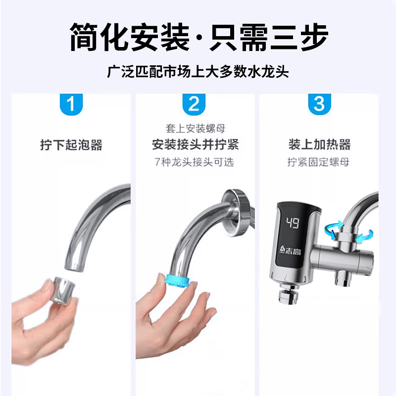 志高免安装接驳式电热水龙头