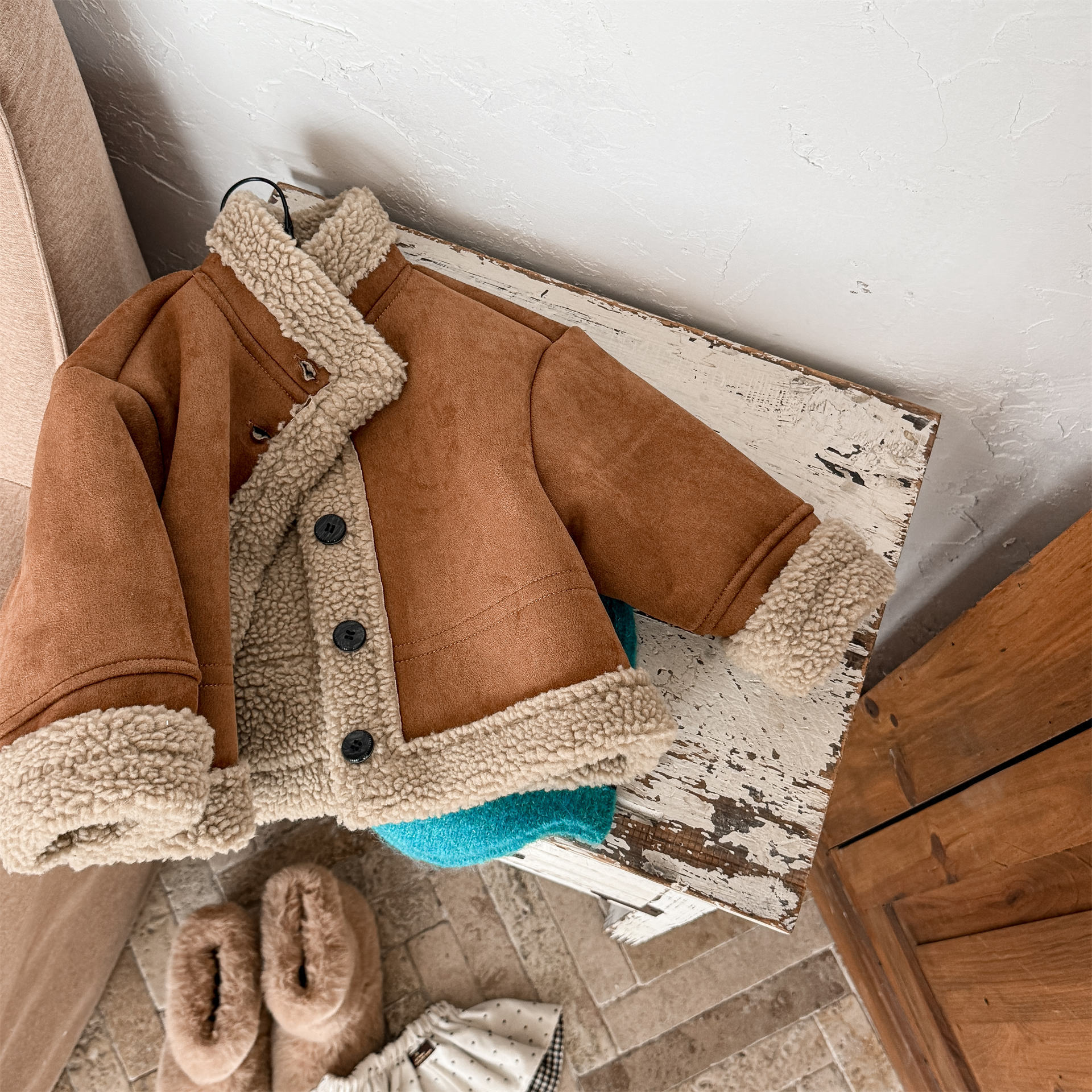 皮毛一体~童装冬装新款儿童韩版棉衣男女童冬款外套棉服加绒外套