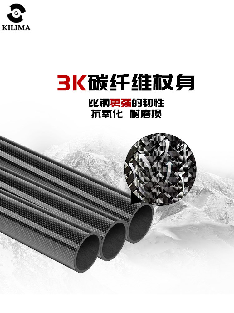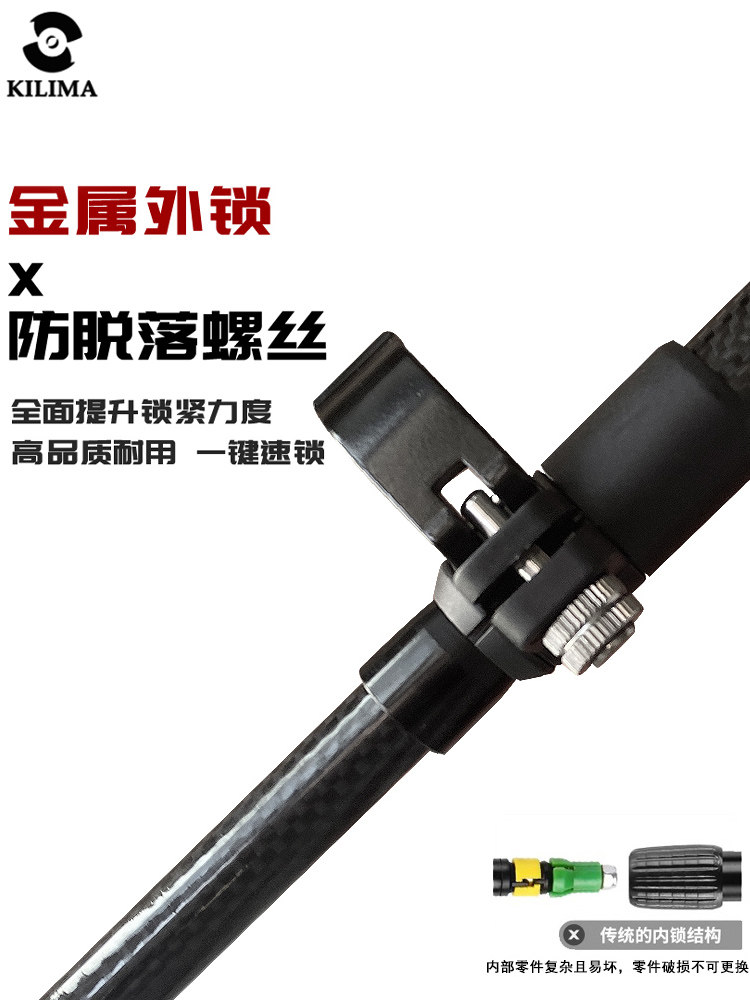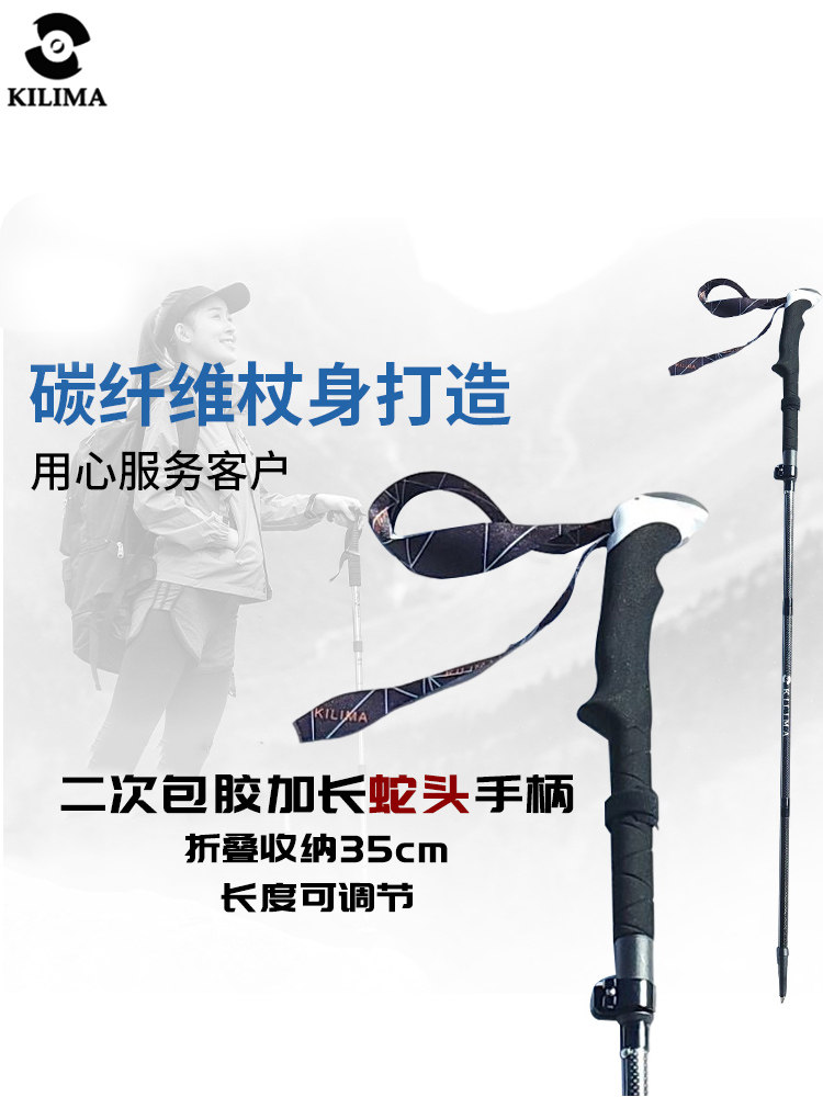 KILIMA乞力马登山杖超轻3K碳纤维长手柄金属卡扣男女徒步雪山