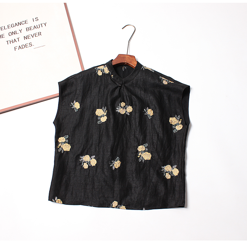 老钱风~复古篙级感38姆米老料龟纹香云纱100桑蚕丝刺绣短袖上衣女