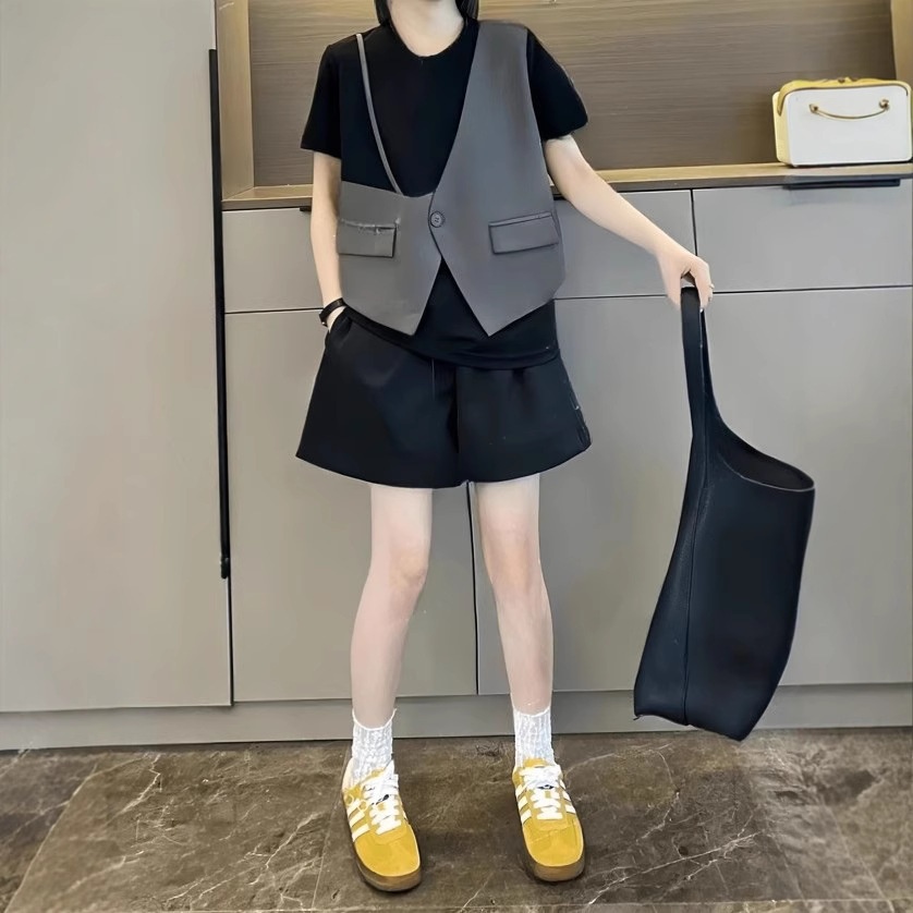 设计感拼接假两件短袖T恤女2024夏新款韩版宽松休闲遮肚显瘦上衣