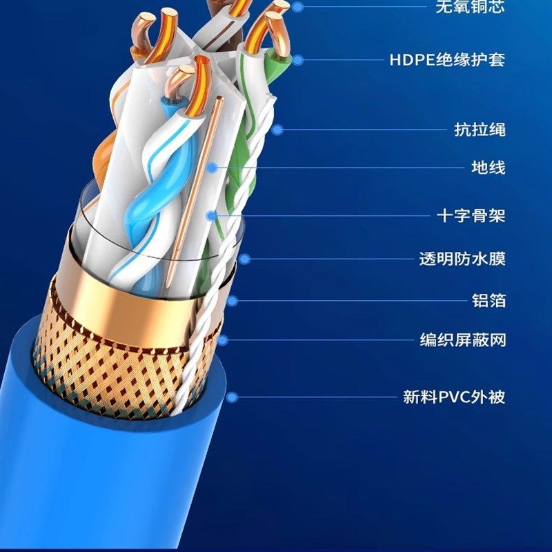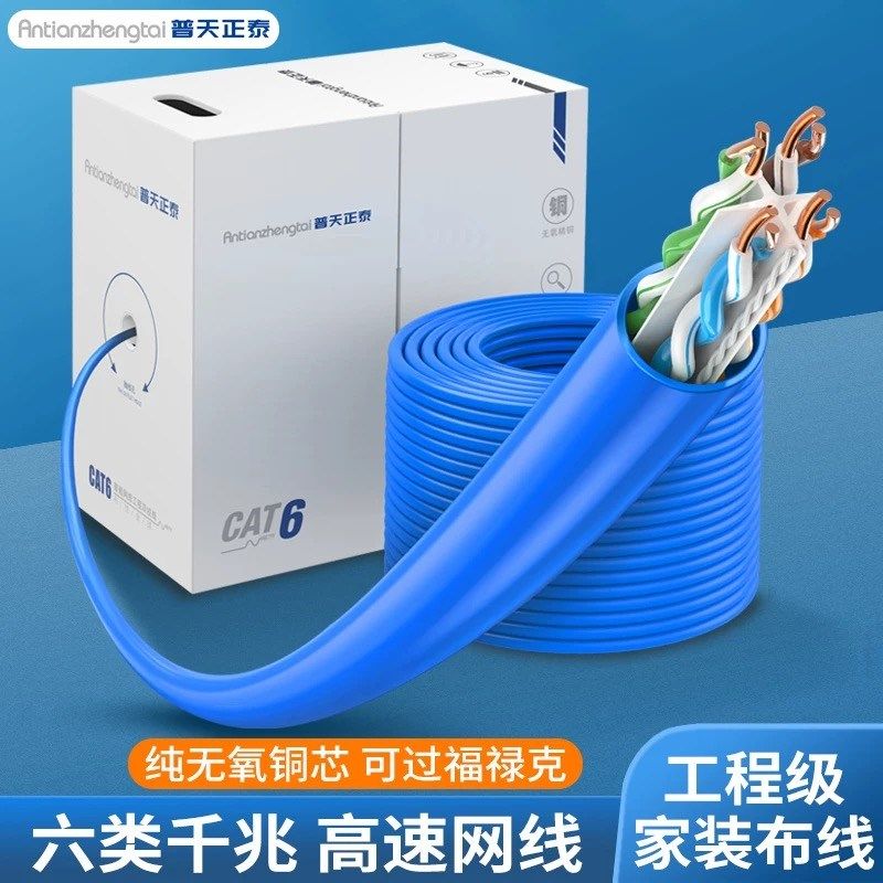 普天纯铜超五类六类千兆网线家用高速宽带POE监控7类网络线无氧铜