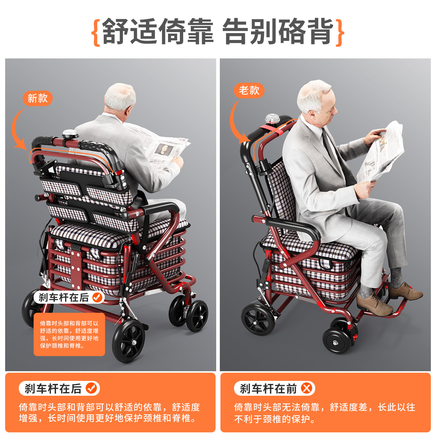 老人手推车可推可坐代步买菜购物老年人行走助行便携可折叠小推车
