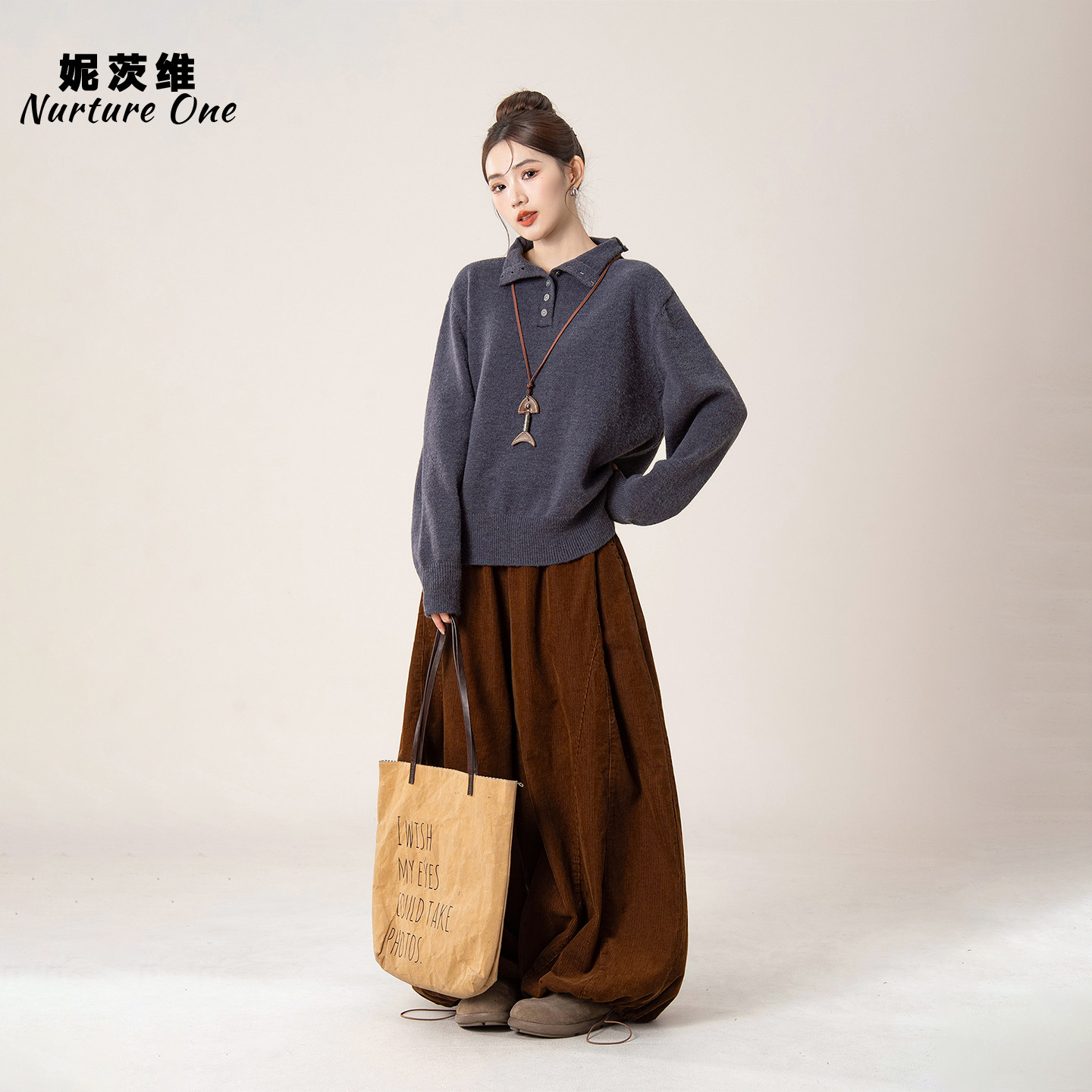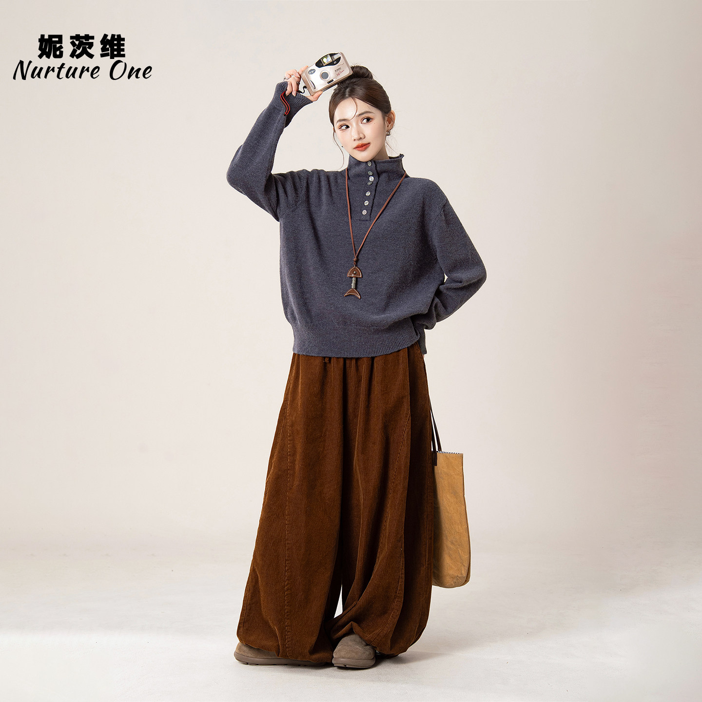 灰色慵懒松弛感高领纽扣针织毛衣女冬季新款宽松显瘦内搭打底上衣