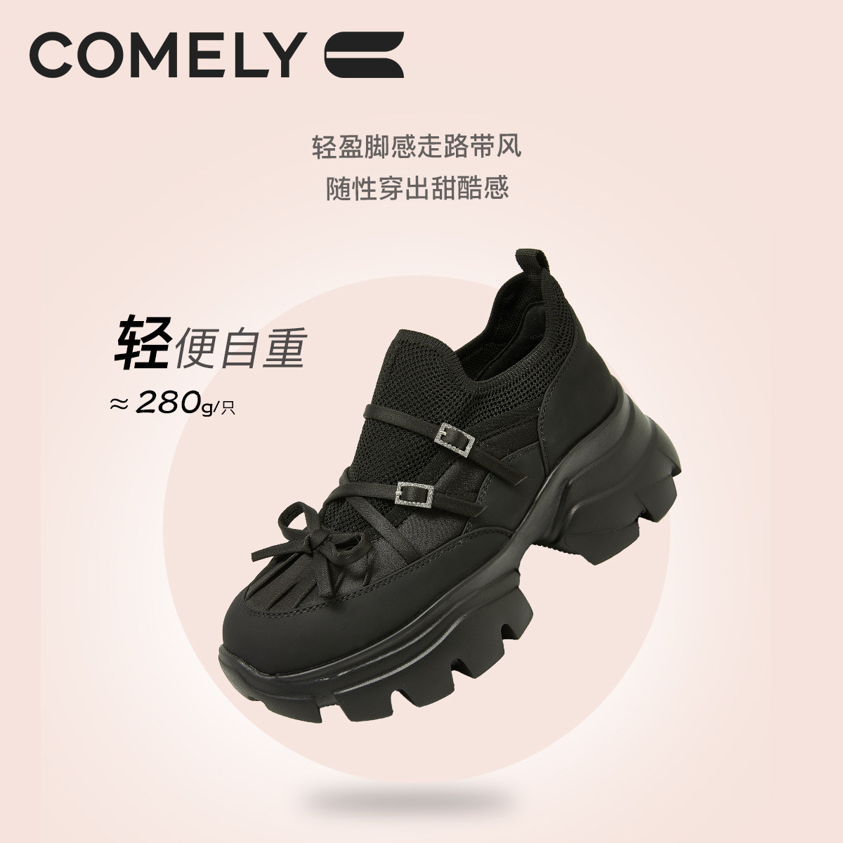 康莉厚底老爹鞋女2026年春季新款黑色网面运动鞋商场同款61033