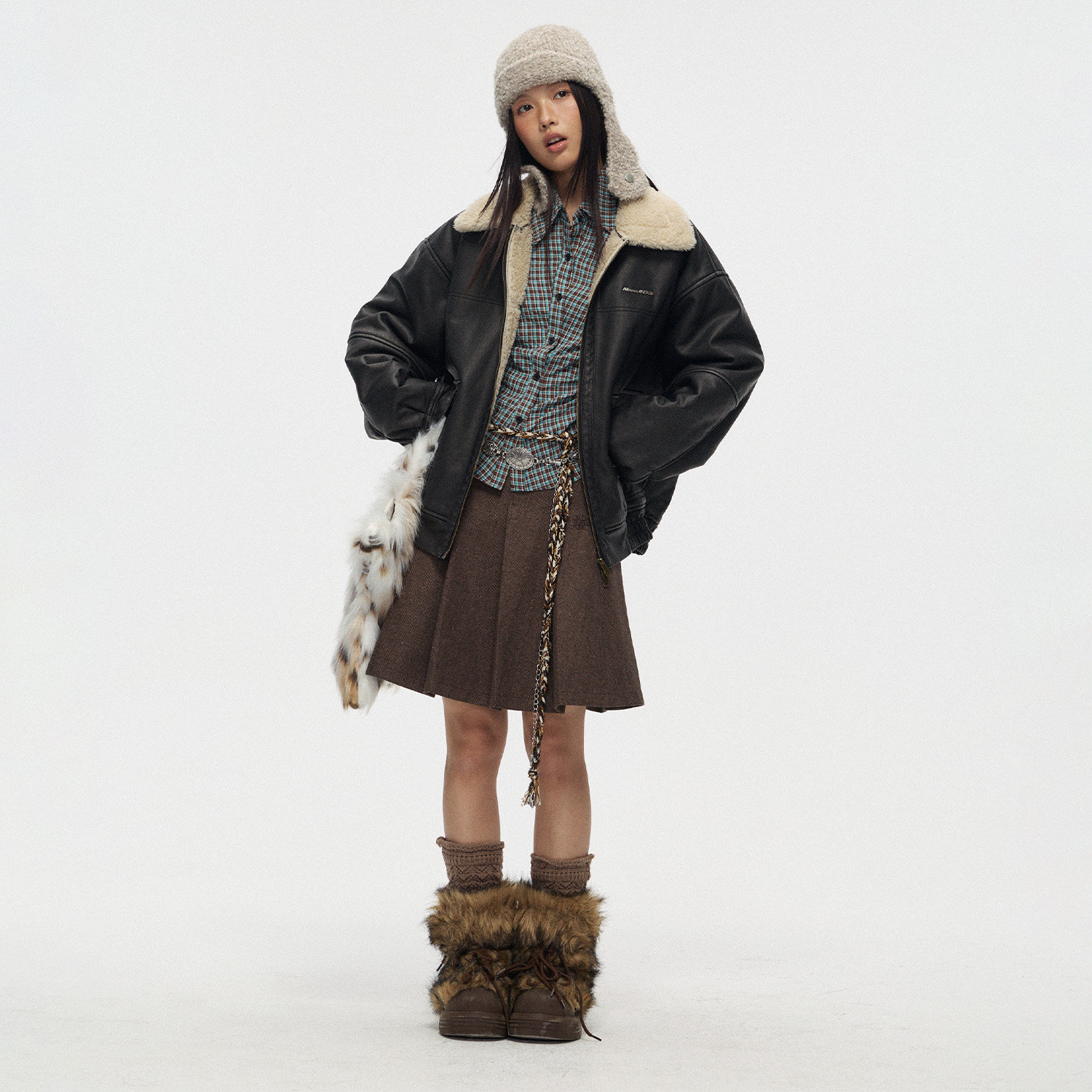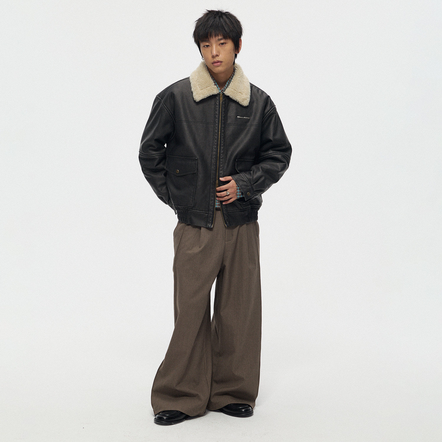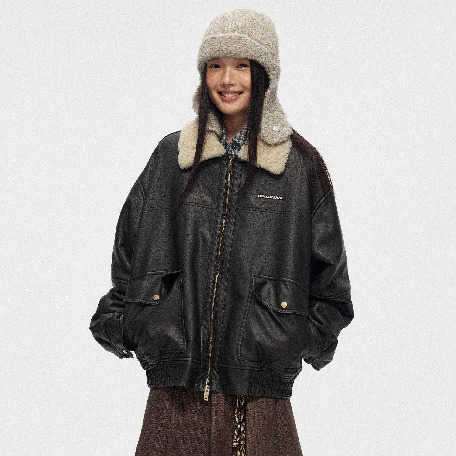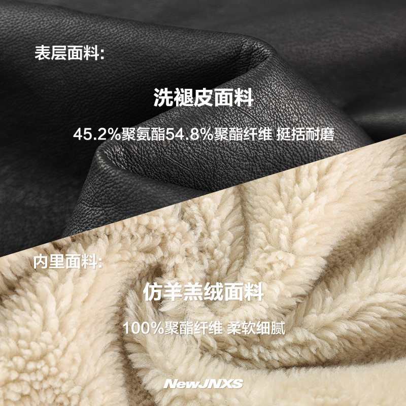 江南先生NewJNXS仿羊羔绒毛领夹克春秋宽松机车服外套皮毛一体