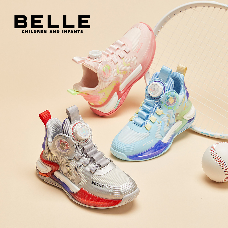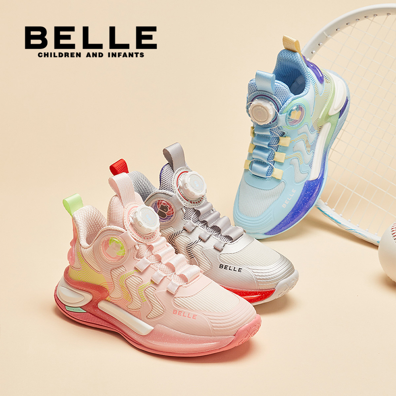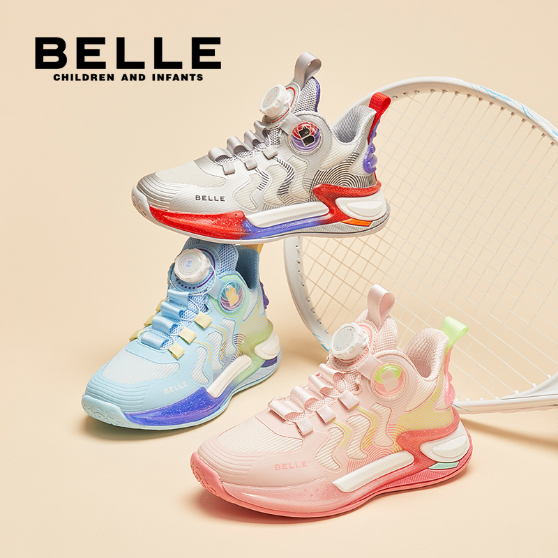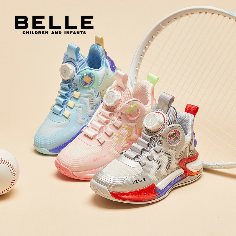 百丽男童2025秋季新款单鞋透气儿童运动鞋中大童旋转扣跑步运动鞋