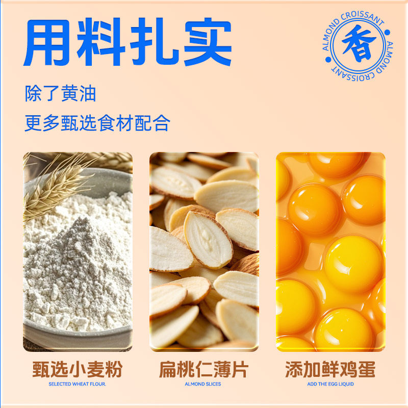 【益小蓝】 扁桃仁可颂牛角包 面包坊手作级营养早餐香酥西式烘焙