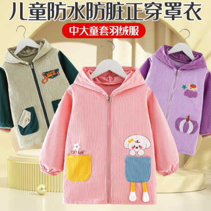 秋冬季中长款羽绒服专用罩衣男女孩中小儿童套棉袄拉链连帽反穿衣