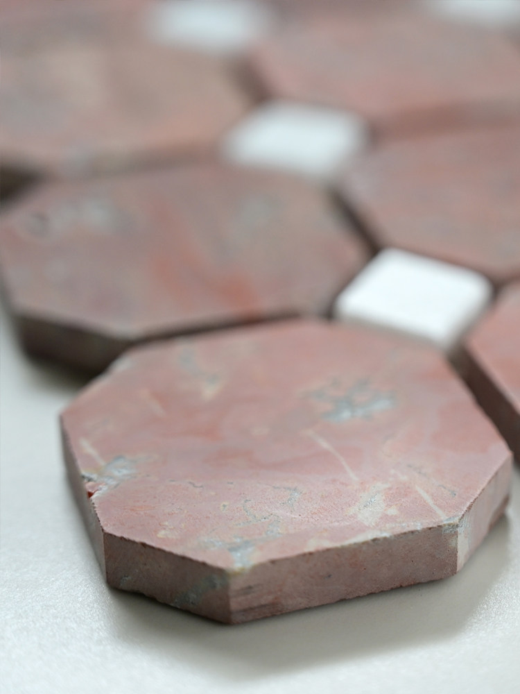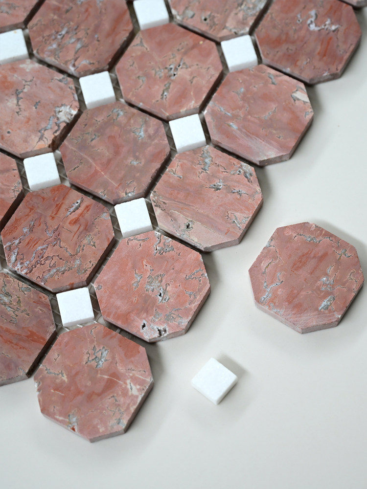 天然石材红洞石马赛克背景墙砖露台日式侘寂复古八角防滑地砖瓷砖