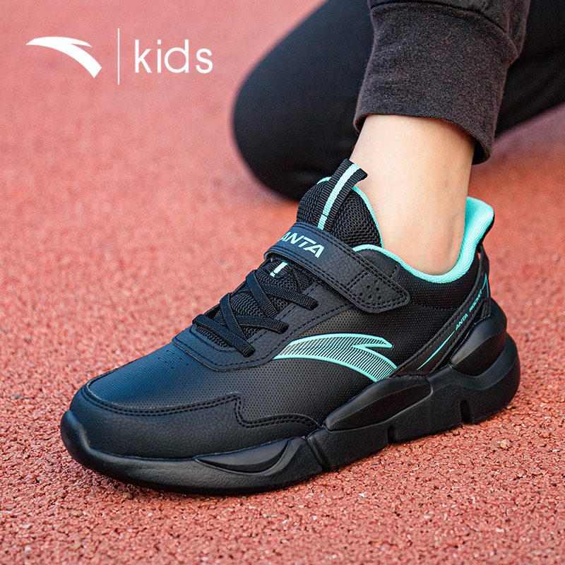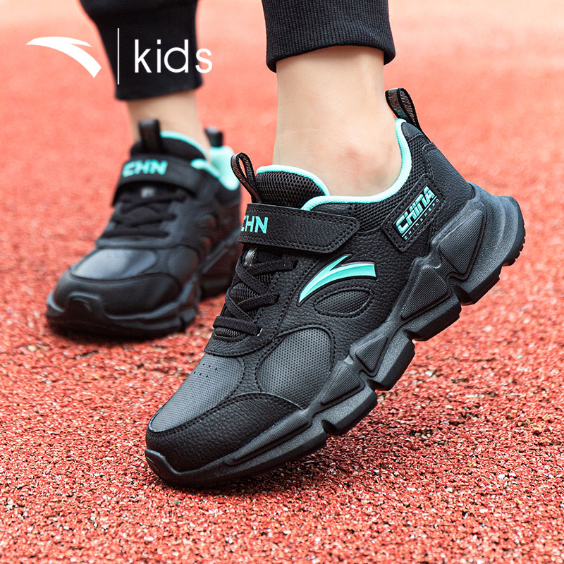 安踏童鞋儿童革面跑步鞋秋冬男童透气运动鞋中大童男孩魔术贴鞋子