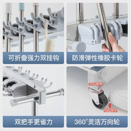 不锈钢拖把架可移动置物架落地整理清洁工具墩布扫把架收纳架定制