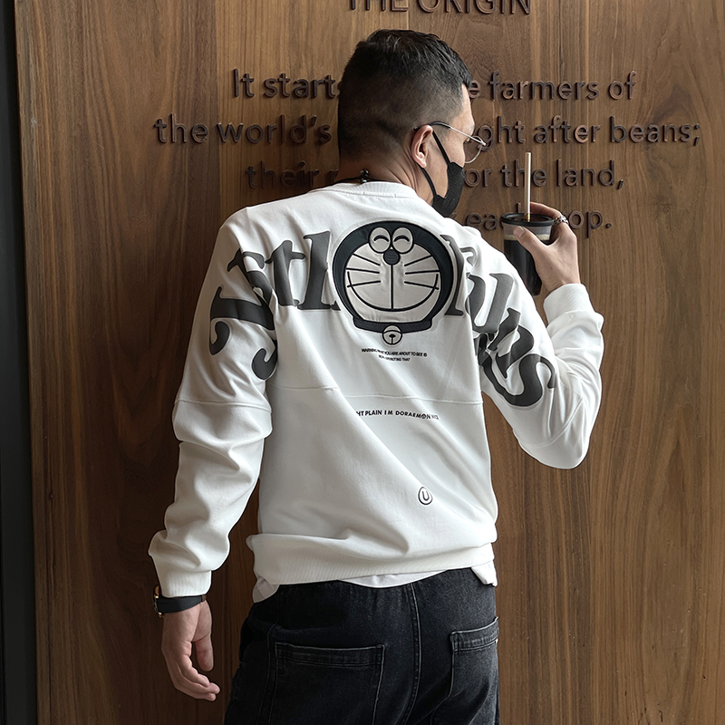 春秋哆啦A梦限量款发泡印花长袖卫衣男炸街刺绣重工休闲圆领外套