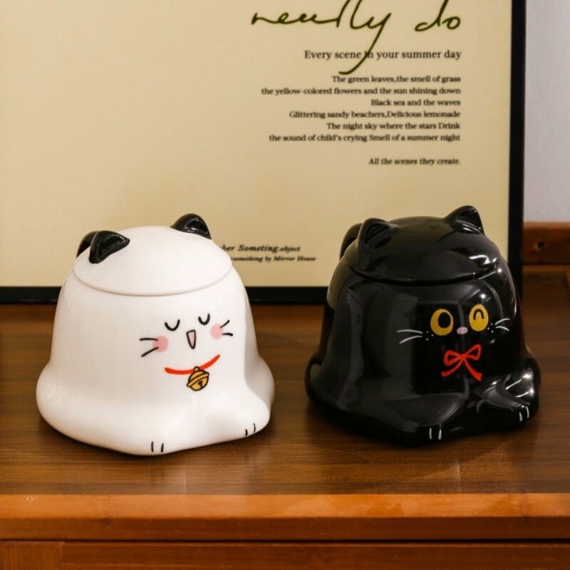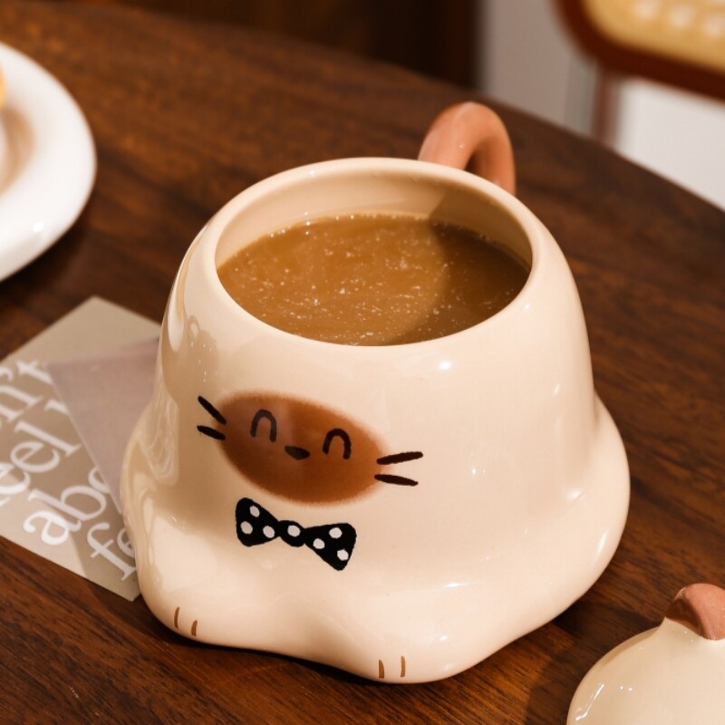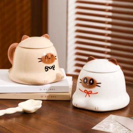 可爱暹罗猫咪杯子家用陶瓷水杯带盖卡通马克杯女生创意礼物咖啡杯