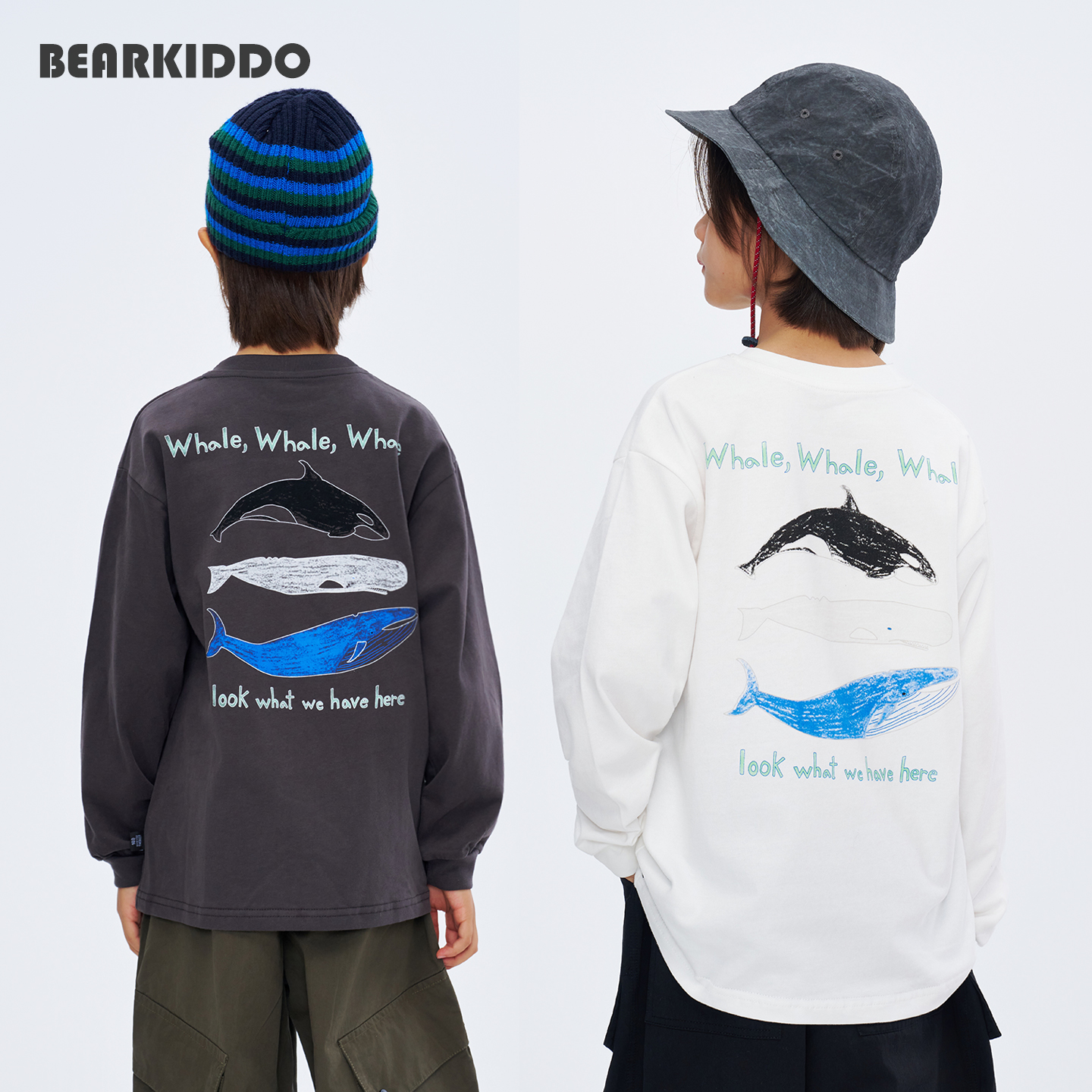 bearkiddo日系男童T恤儿童宽松柔软打底衫中大童日系户外长袖体恤