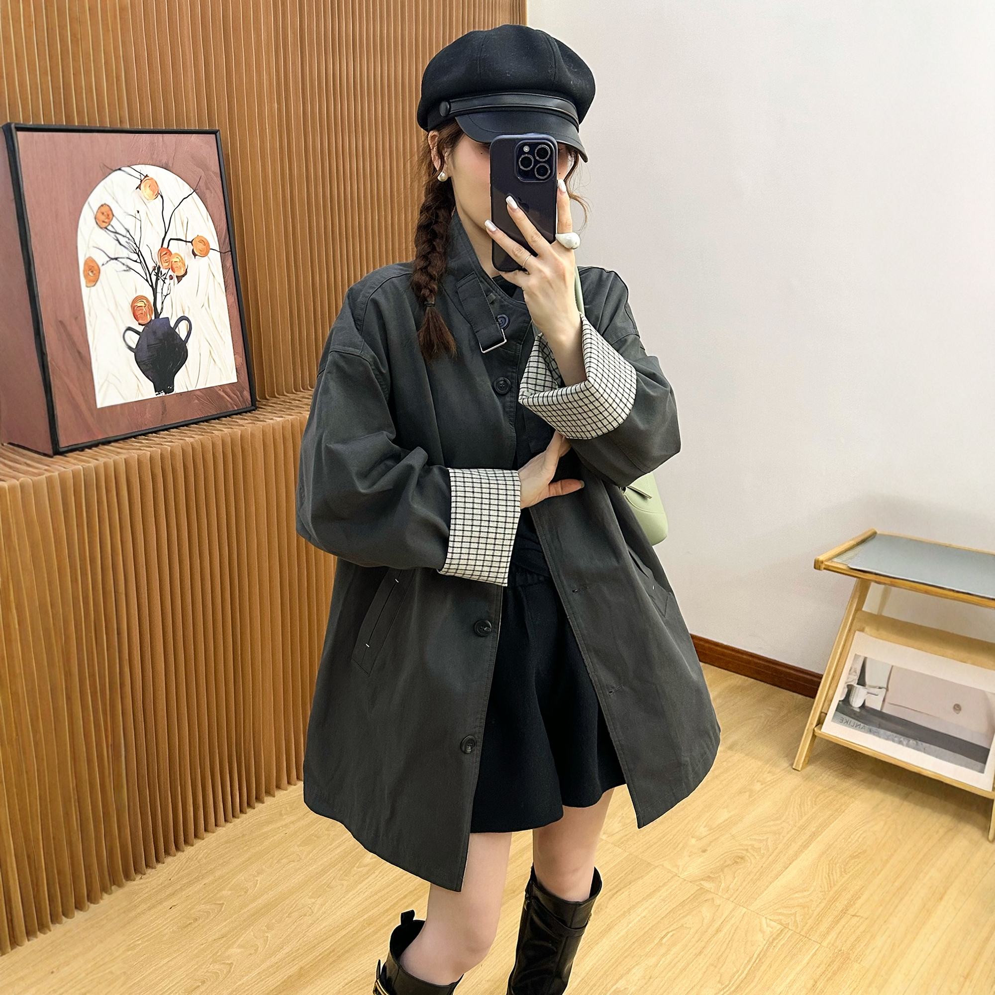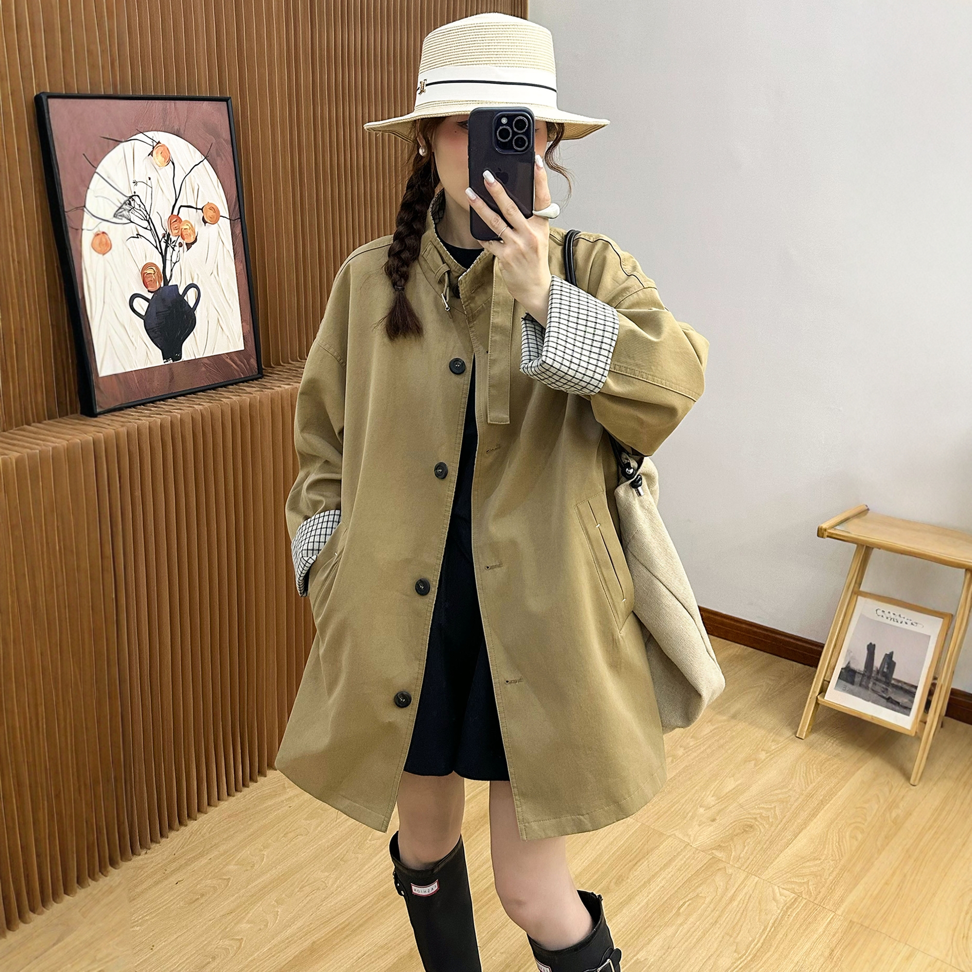 复古立领工装休闲风衣女欧洲站2025秋装新款欧货女装中长款外套潮