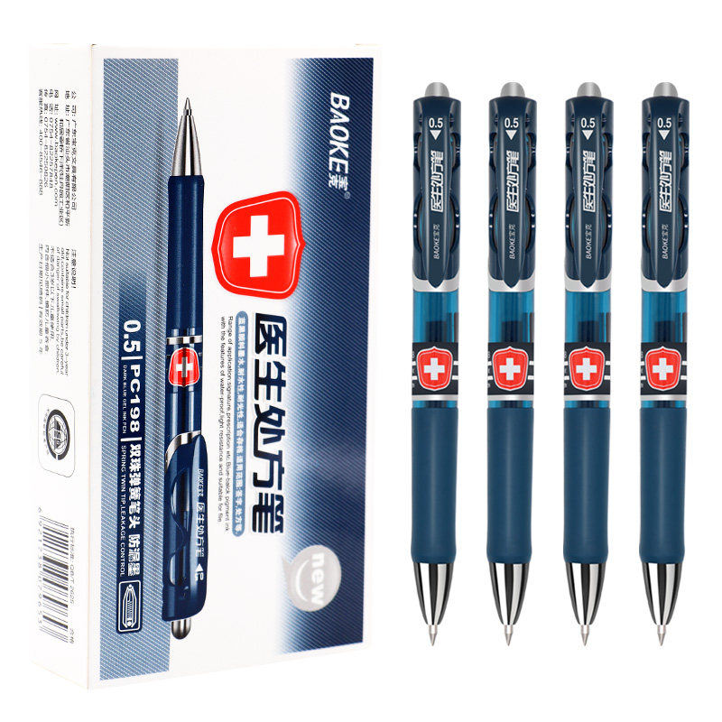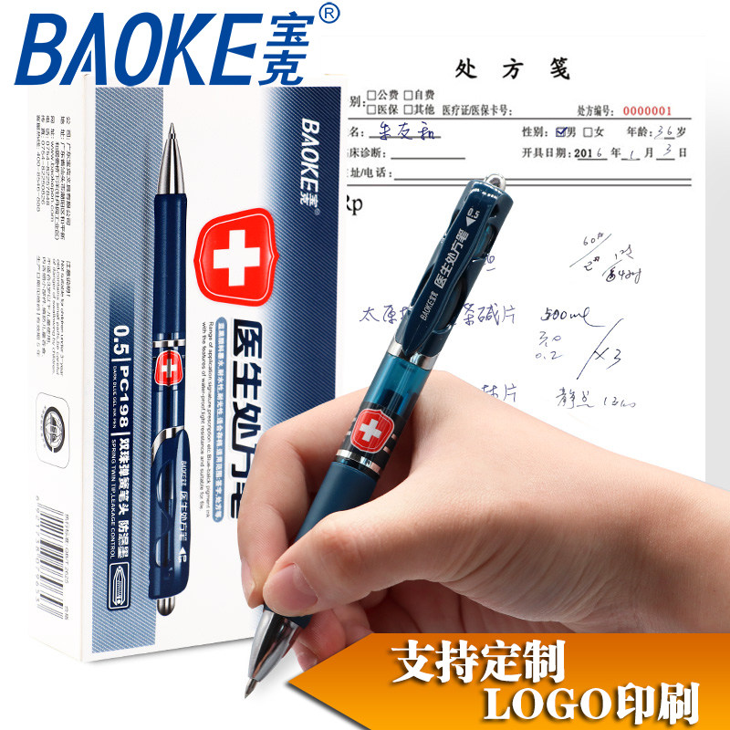 宝克PC198按动笔墨蓝水笔蓝黑色中性笔签字笔医生处方笔0.5mm护士碳素笔医院用笔按压笔企业广告定制印刷logo