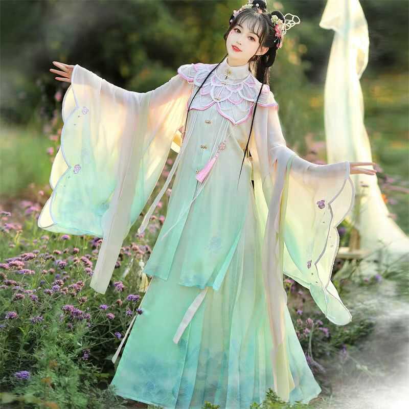原创汉服女秋季明制仙气飘逸唐制古风新款套装长衫步步生莲马面裙