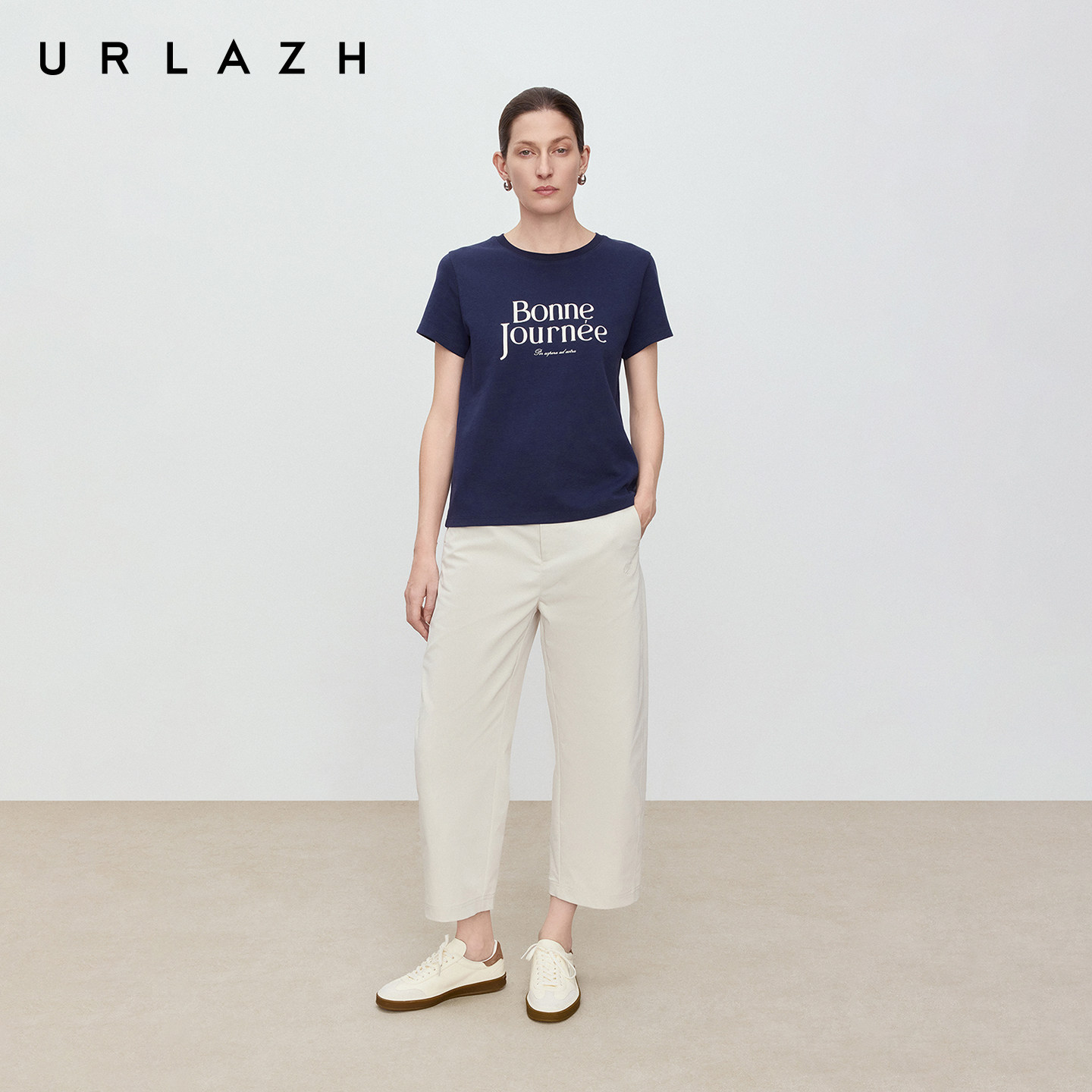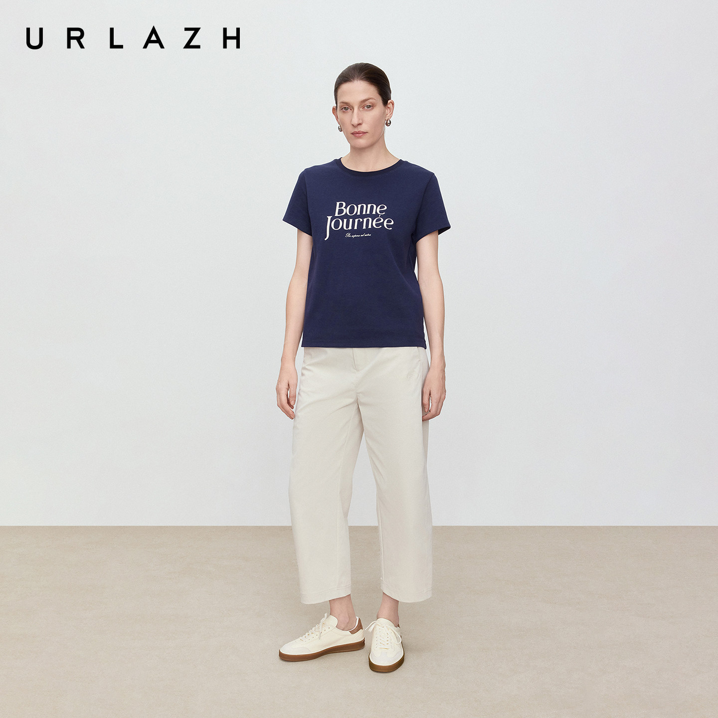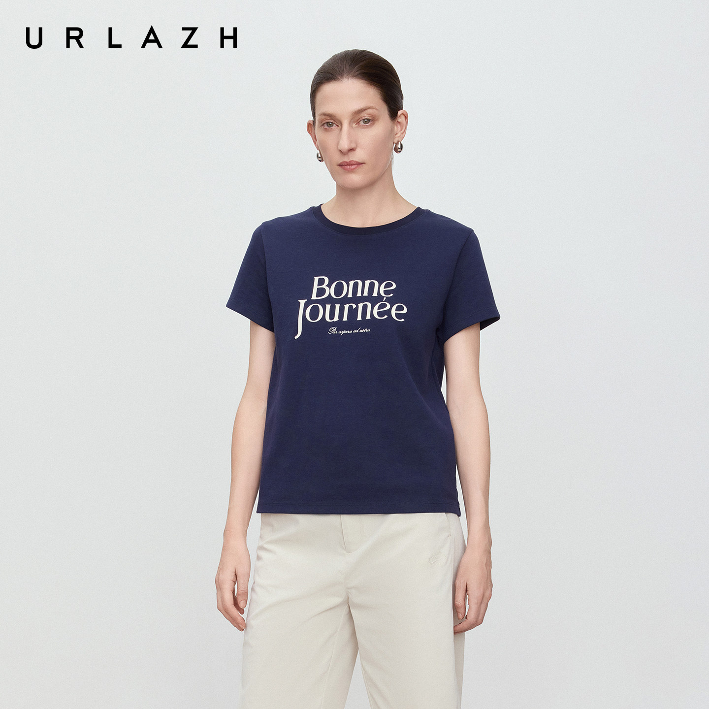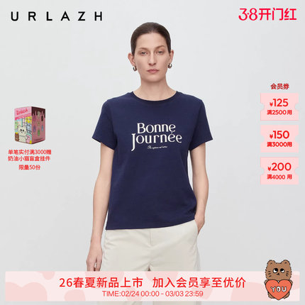 商场同款URLAZH有兰2026春季新款复古简约撞色字母正肩短袖T恤女