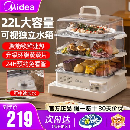 美的电蒸锅多功能家用三层早餐机一体锅大容量蒸笼热菜蒸馒头包子