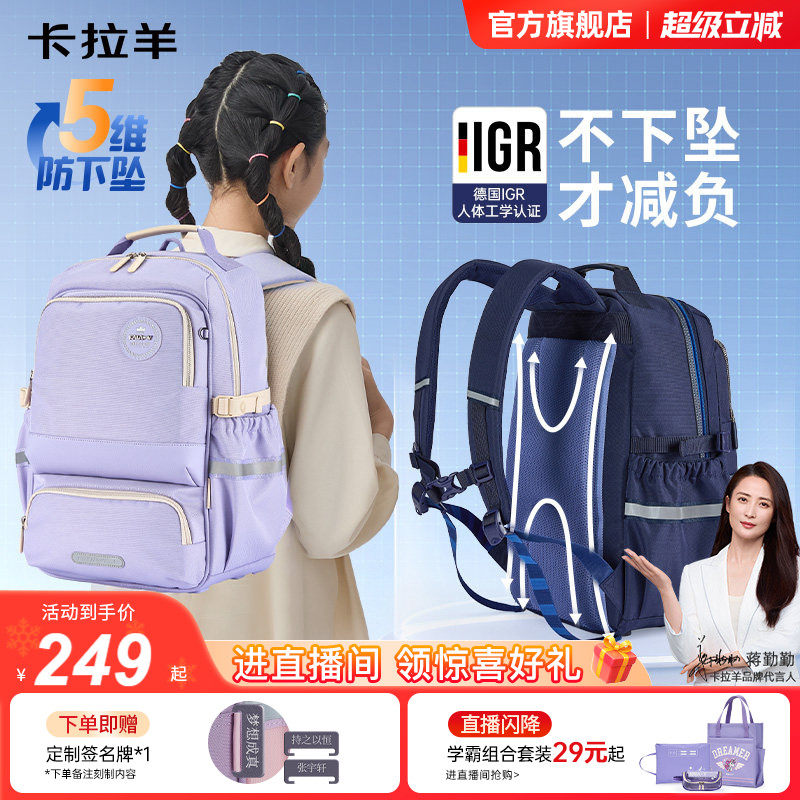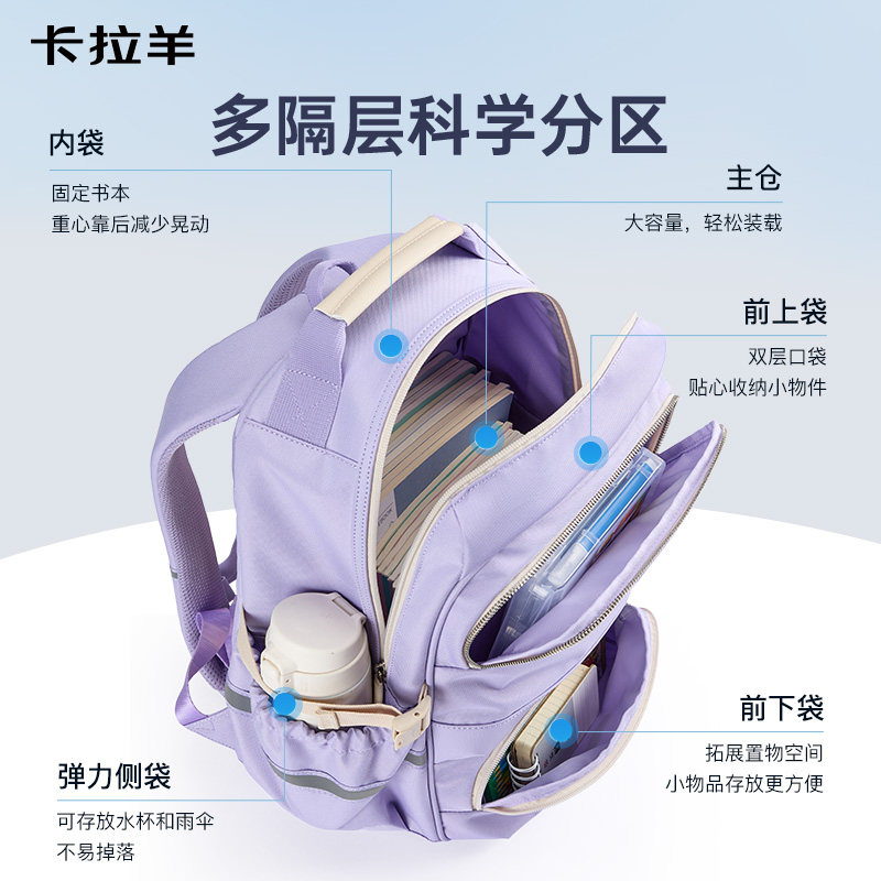 【蒋勤勤代言】新品首发卡拉羊中学生风琴书包减负防下坠双肩包男大容量科学分区收纳高中生轻便背包女