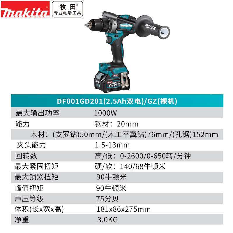 原装牧田Makita充电钻40V锂电充电起子电钻DF001GD201大扭矩无刷