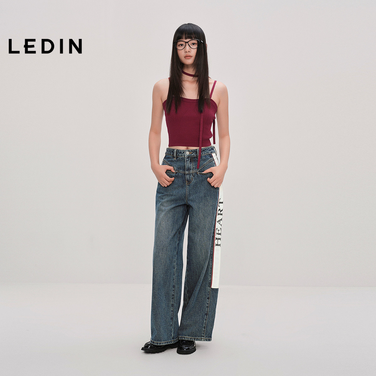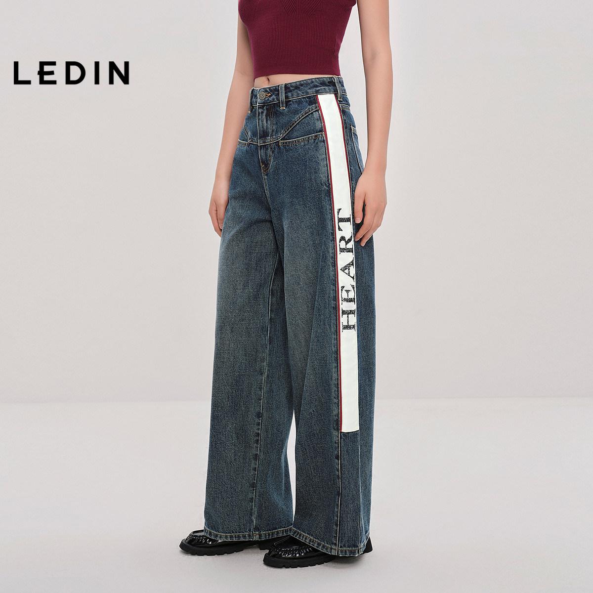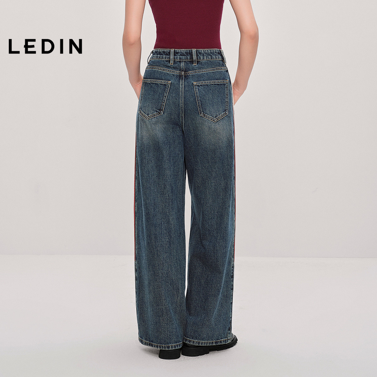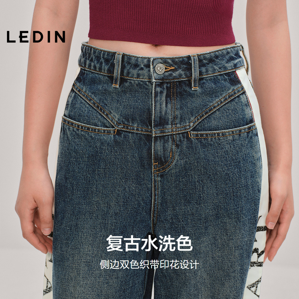 【商场同款】乐町直筒牛仔裤秋季新款宽松高腰水洗裤子C2HAF3531