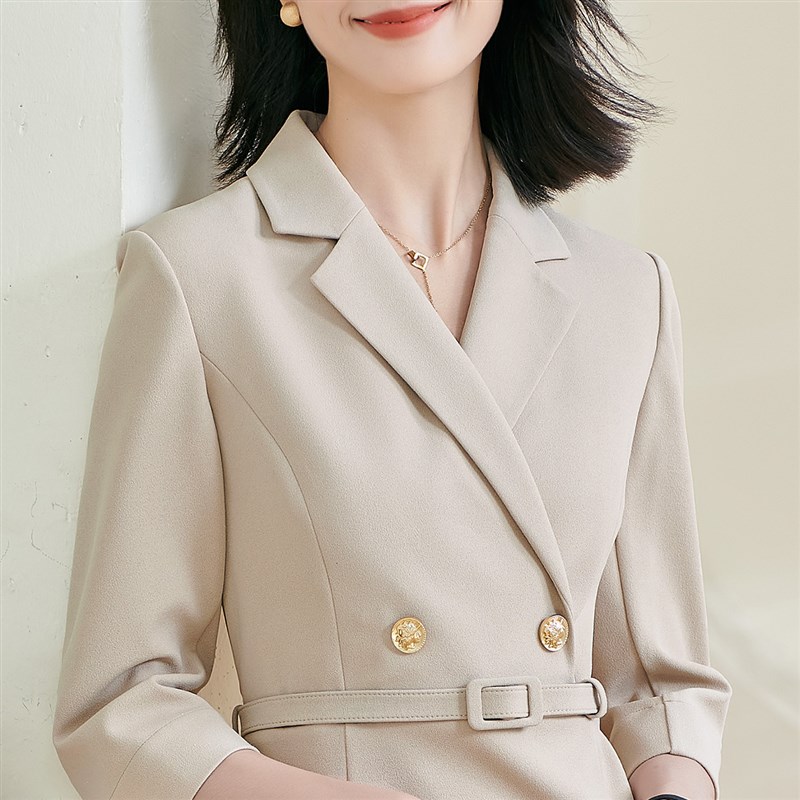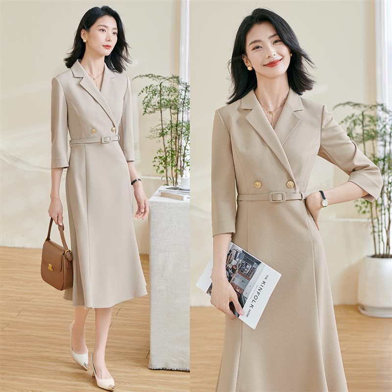 米思阳2024秋季新款高级感精致西装领连衣裙七分袖鱼尾正式裙子女