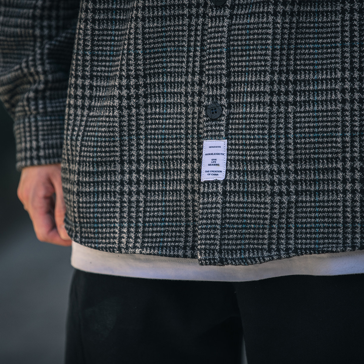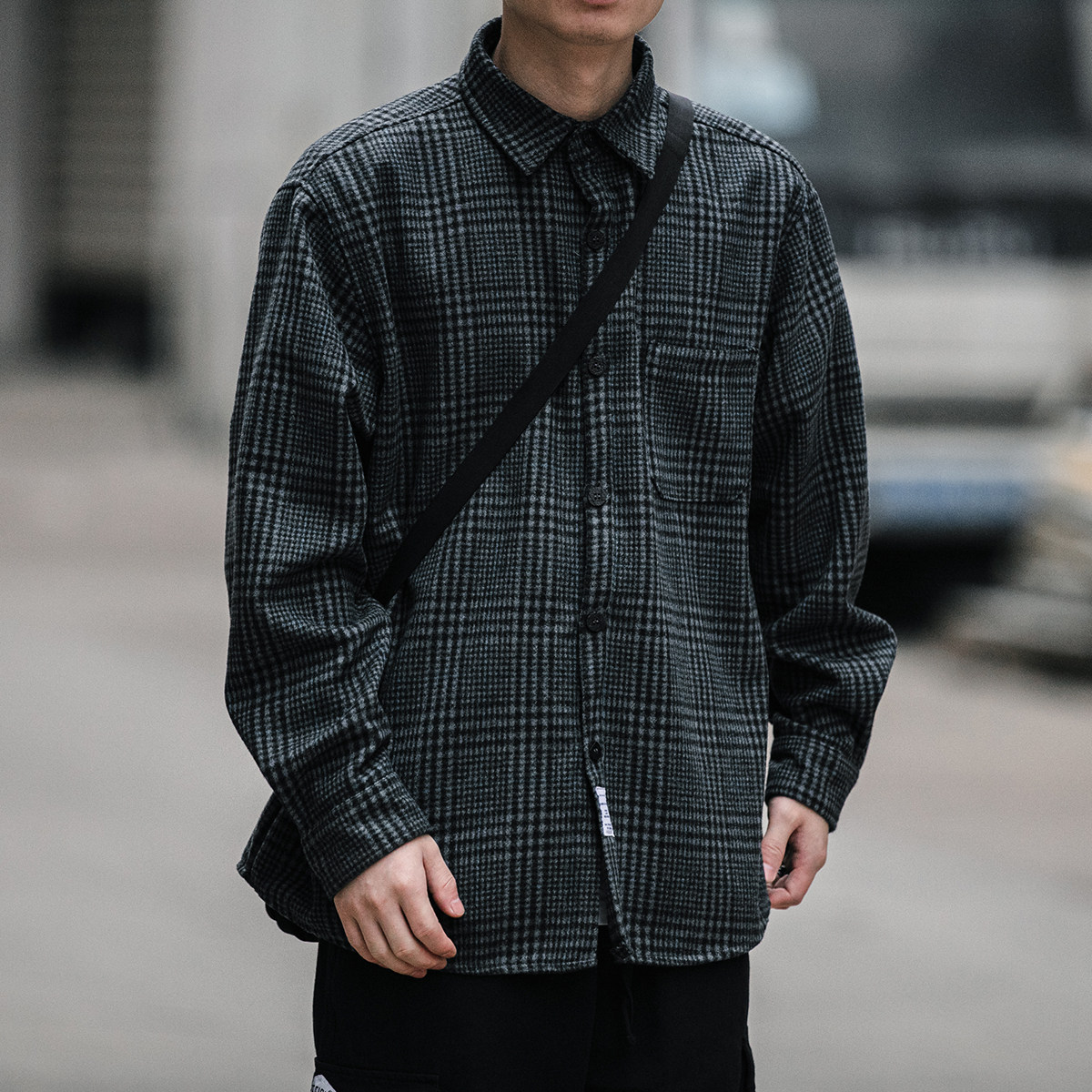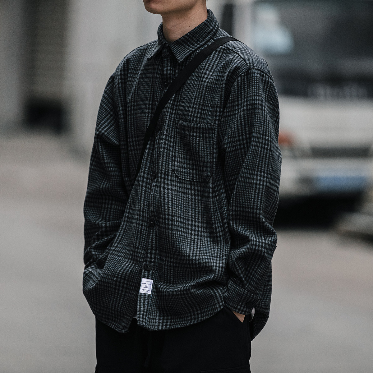 男道日系新款复古格子衬衫潮牌春秋男生宽松百搭休闲情侣衬衣外套
