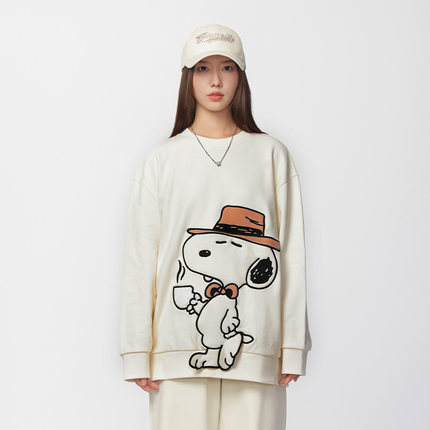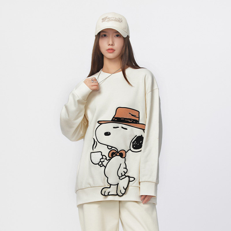 Fun潮牌春季新款圆领套头卫衣男女同款史努比联名情侣款舒适宽松