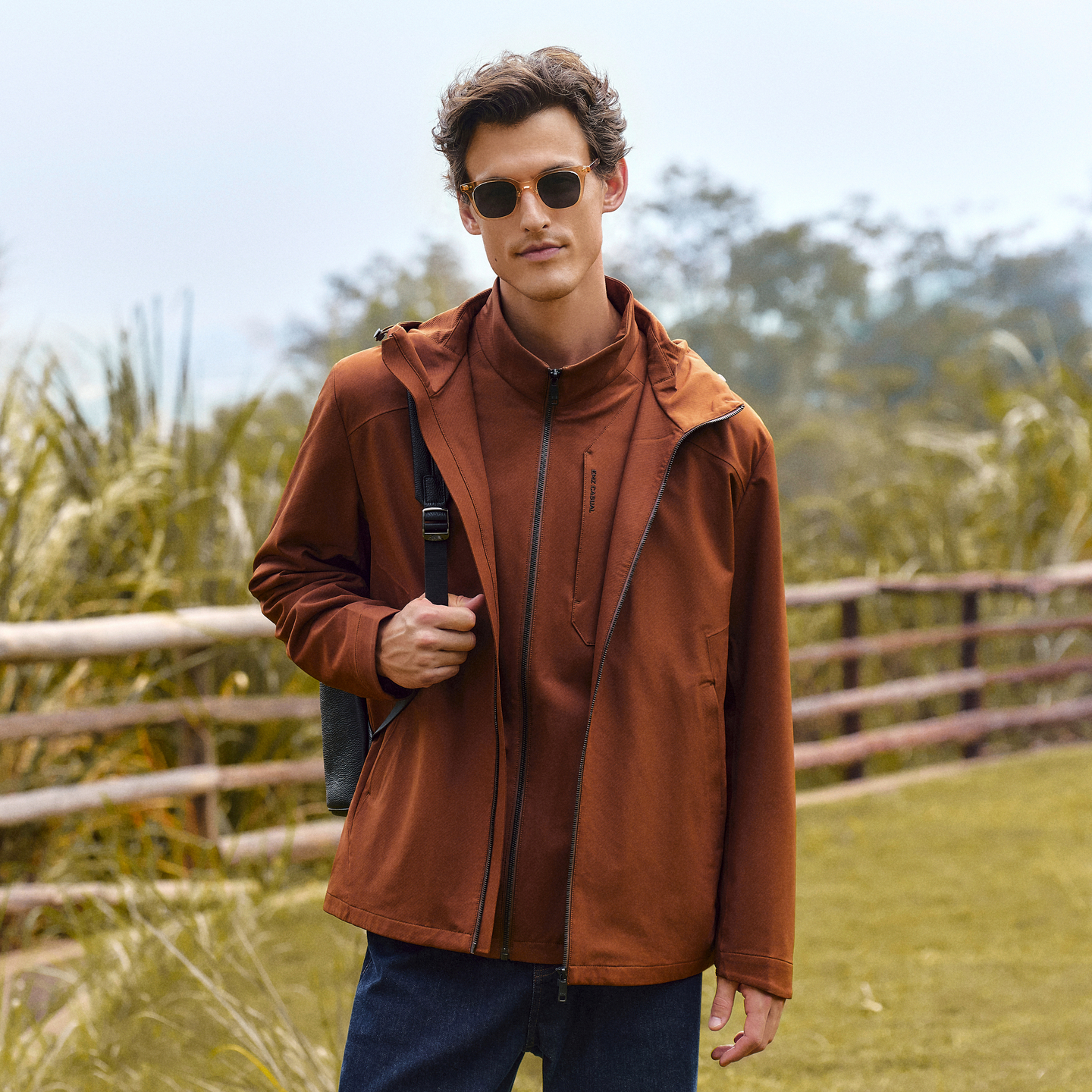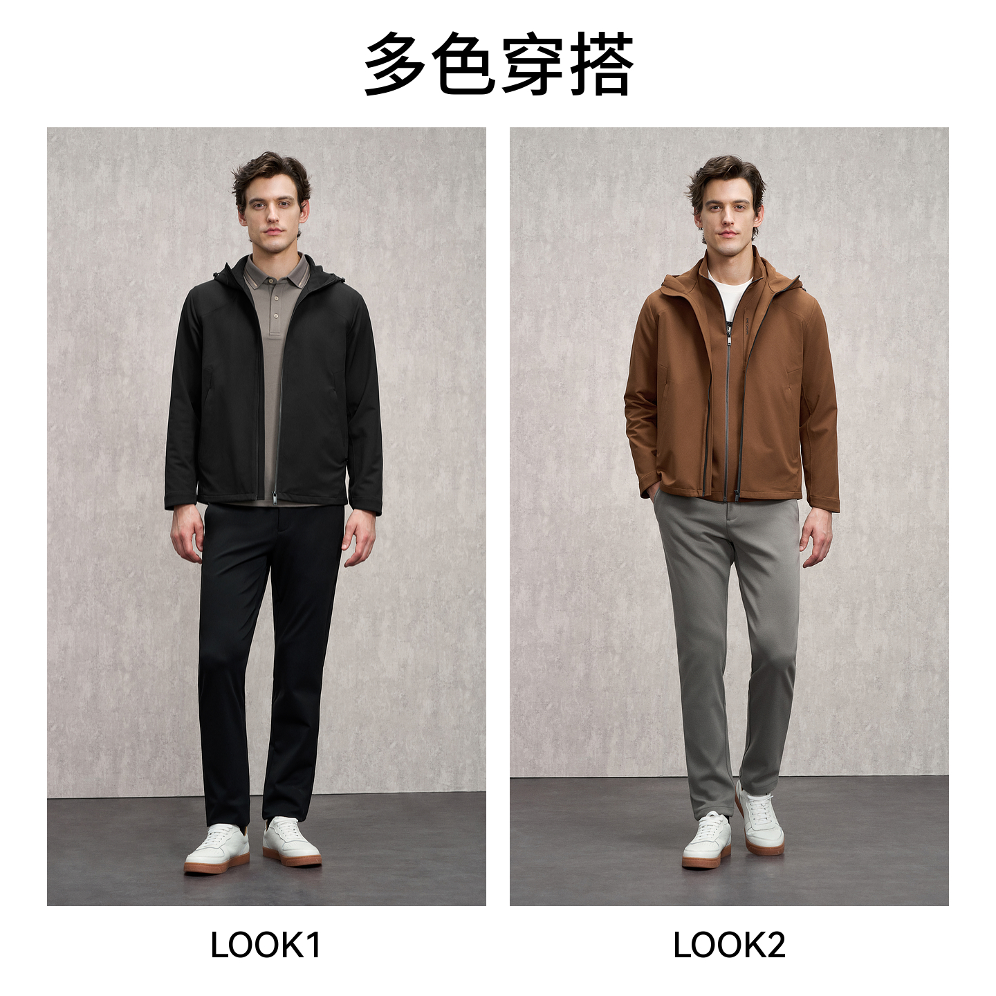 EMZ鄂尔多斯25秋冬新款男士休闲运动轻户外简约宽松连帽夹克外套