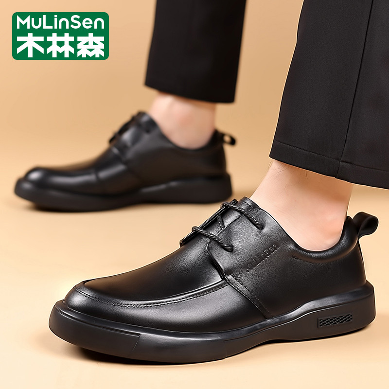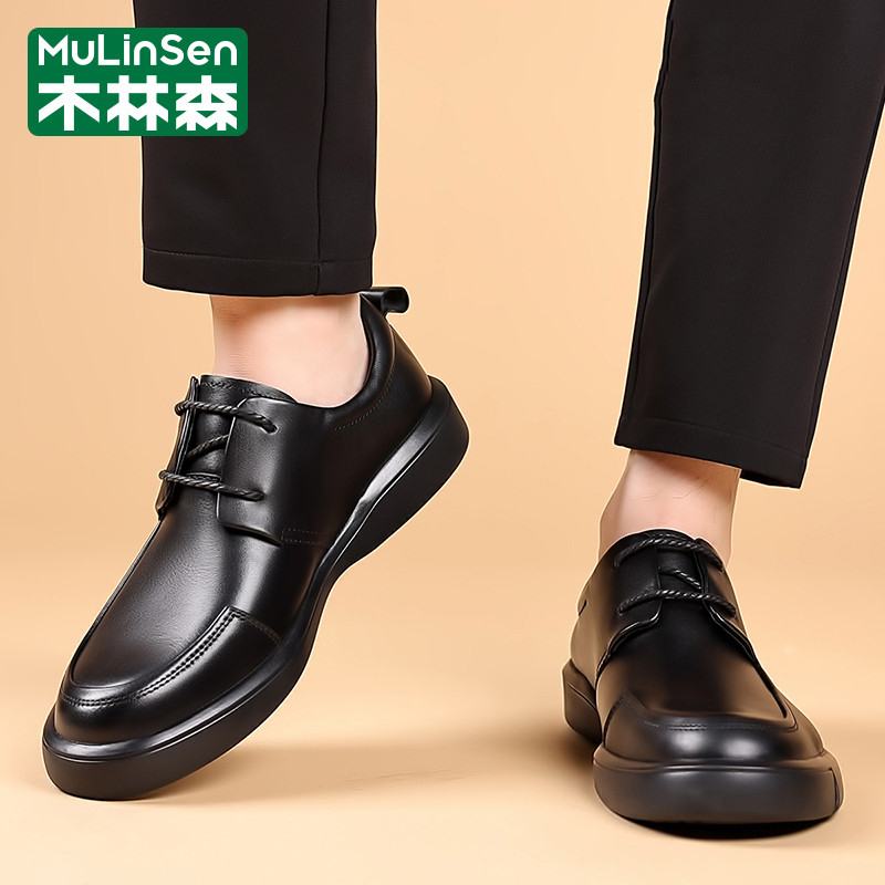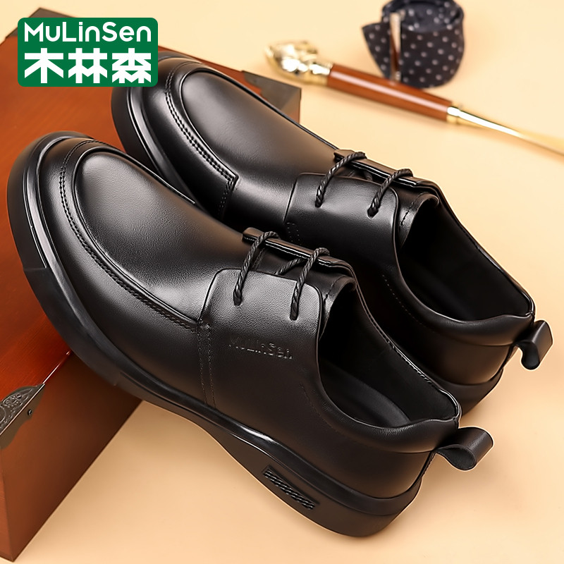 木林森皮鞋男冬季正装商务英伦休闲黑色通勤中年爸爸结婚新郎潮鞋