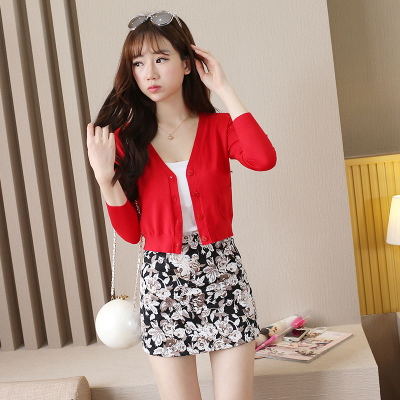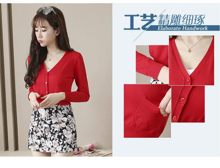 春秋季V领短款长袖针织衫女开衫薄款上衣外搭披肩高腰毛衣小外套