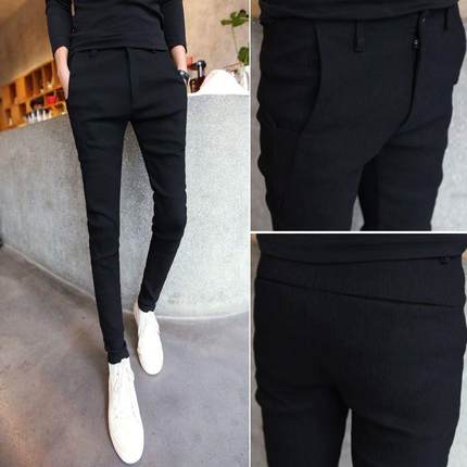 潮牌春秋季新款男士休闲裤子韩版弹力修身小脚裤紧身韩版小西装裤