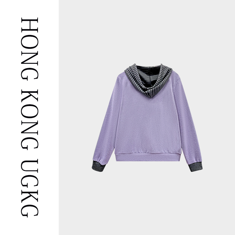 香港UGKG 妈妈卫衣女2025新款秋季大码女装撞色连帽上衣宽松百搭