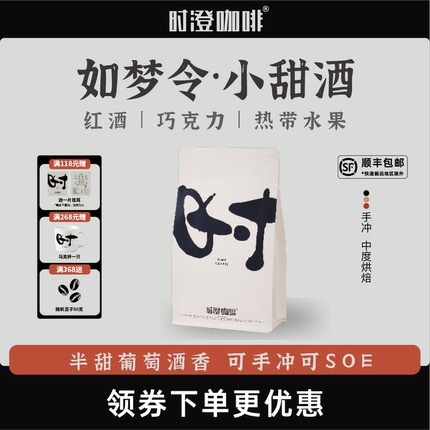 时澄 小甜酒云南小粒咖啡豆单一产地日晒红酒风味新鲜烘焙250g