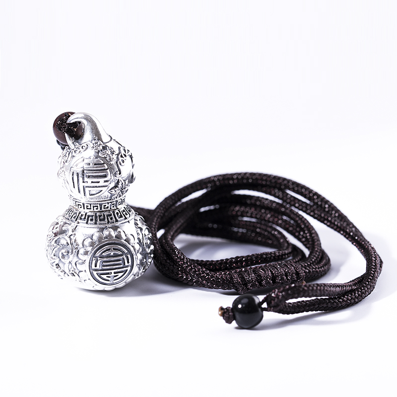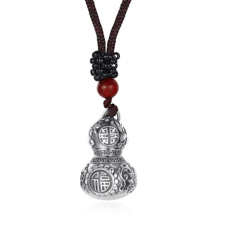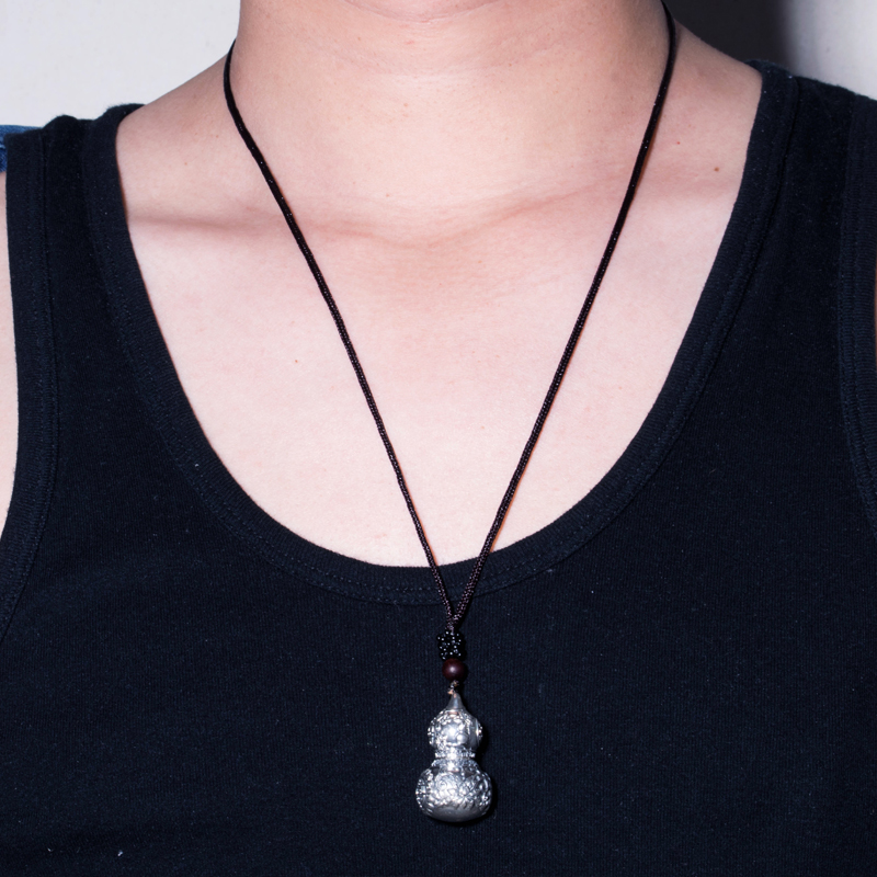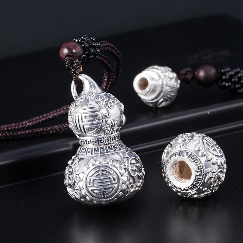 小葫芦吊坠男士项链女藏银空心可打开装东西的朱砂复古银挂件饰品
