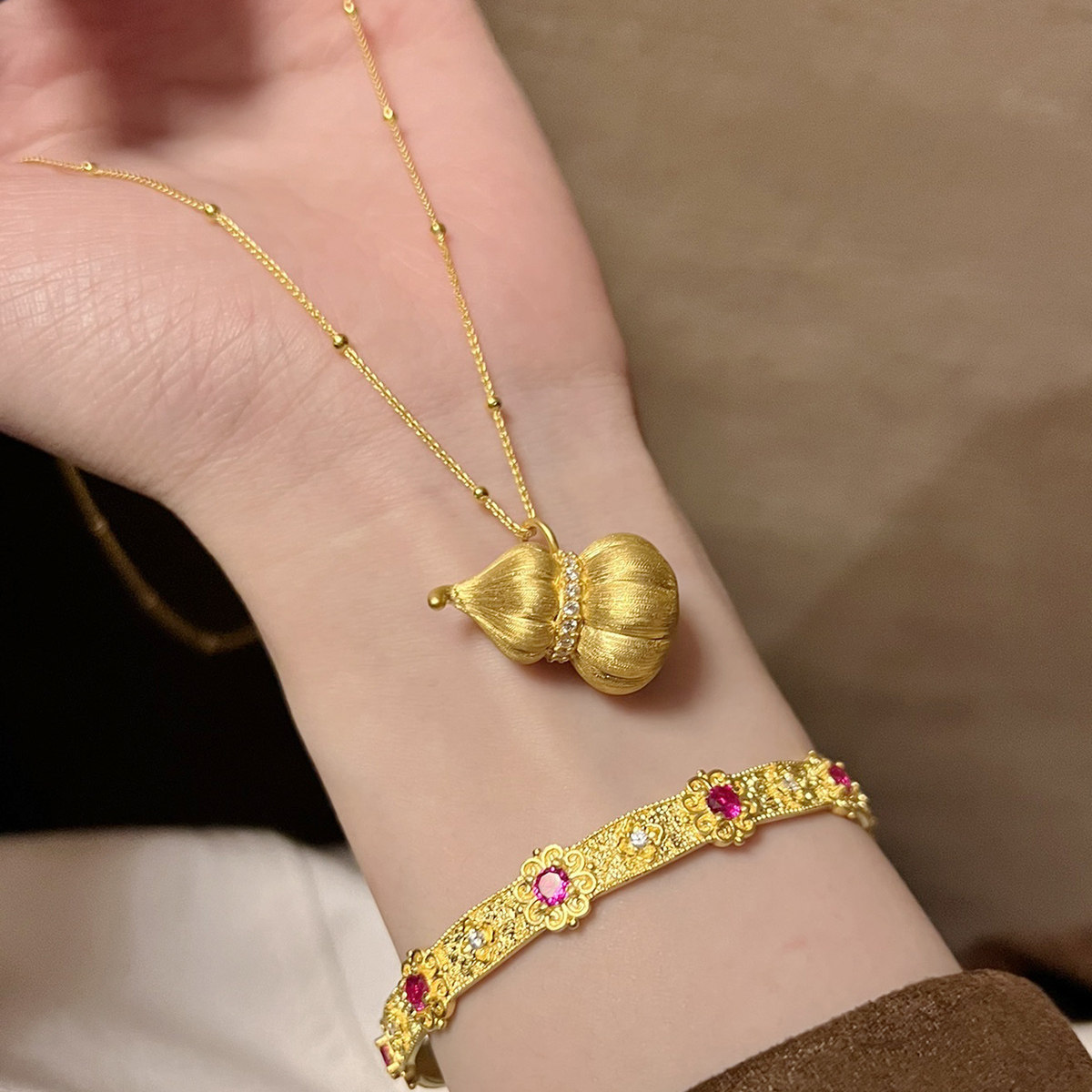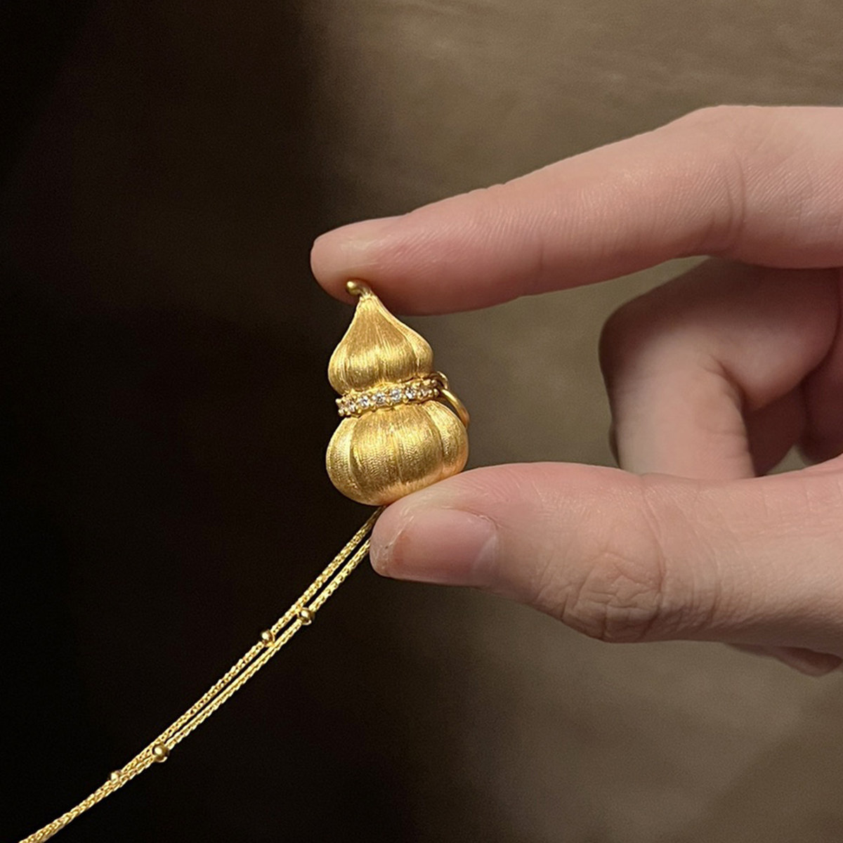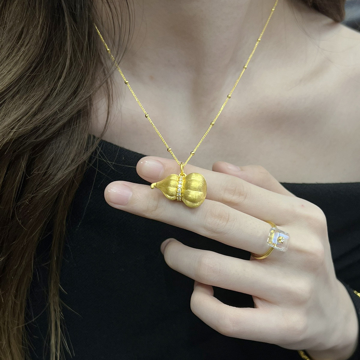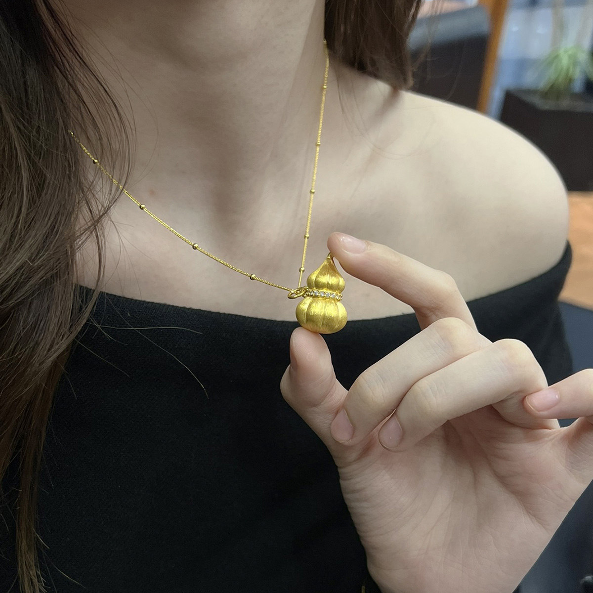 吉盟珠宝5D点钻黄金吊坠女拉丝南瓜葫芦999足金项链坠国风新中式